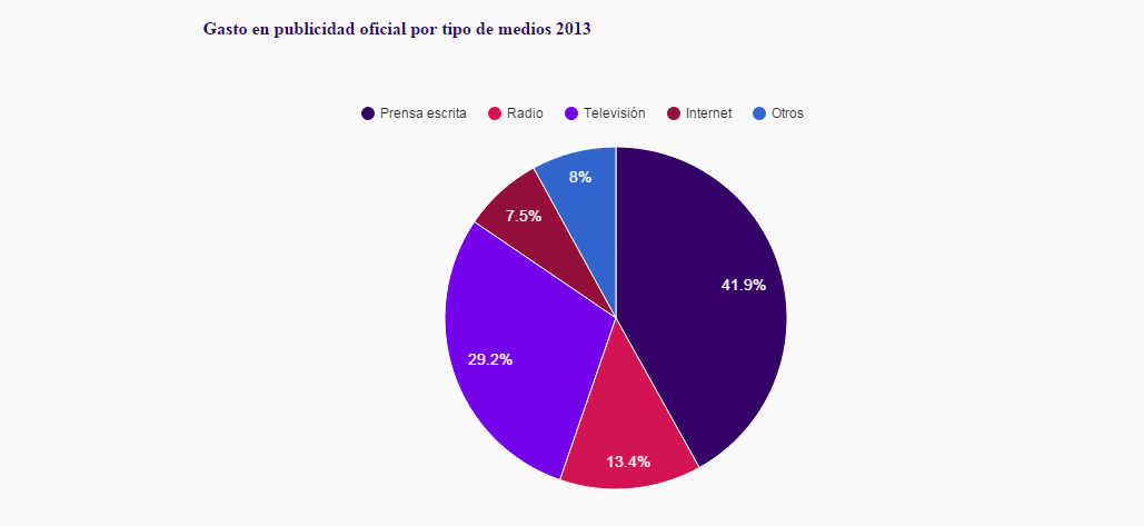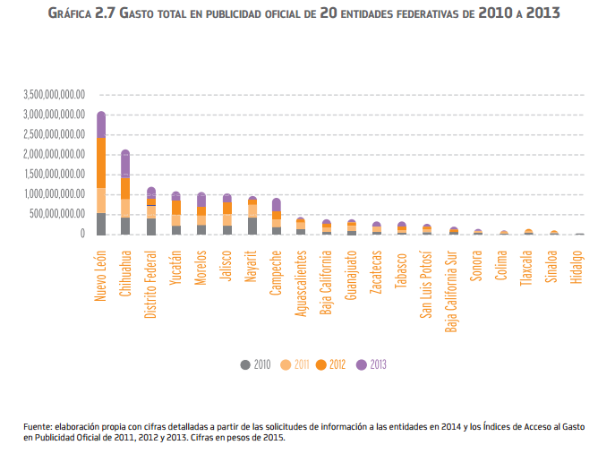 ????????????????????????????????????????????????????????? En 2013, el gobierno estatal gastó 313 millones de pesos en publicidad oficial, pero sólo entregó la lista de pagos a proveedores por 230 millones. 26pub8 El listado incluye pagos por 96.5 millones a prensa escrita, 30.8 millones a radio, 67.3 millones a la TV, 17.3 millones a internet y 18.4 millones a otros. Por Daniel Sánchez CAMPECHE, Cam. 29 de agosto del 2015.- De los 313 millones que gastó en 2013 en publicidad oficial, el gobierno de Fernando Ortega Bernés entregó una lista de las empresas a las que pagó convenios de protección, anuncios e inserciones pagadas por un monto de 230 millones de pesos, entre las que destacan las de la familia Arceo, con al menos 56 millones; las de la familia Castillo, con 24 millones, y las de Grupo Milenio, con 18 millones de pesos. A través de la Secretaría de la Contraloría, la administración estatal proporcionó a las organizaciones civiles Artículo 19 y Fundar, Centro de Análisis e Investigación, un listado de 608 pagos a proveedores de publicidad oficial, sin que aparezca alguna compañía vinculada al Grupo Televisa, ni las largas nóminas de los “textoservidores” (replicadores de boletines de prensa de los funcionarios), que no periodistas, que reciben “apoyos” de menos de 20 mil pesos mensuales, sin facturar. De acuerdo con las cifras en manos de las agrupaciones civiles, de los 230 millones 362 mil pesos de 2013; 96 millones 527 mil fueron destinados a la prensa escrita; 30 millones 806 mil pesos a la radio; 67 millones 298 mil a la televisión;  17 millones 299 mil al internet, y 18 millones 429 mil a otros. Con estos recursos, cada año, mayores, Ortega Bernés mantuvo el control de la información o la desinformación que privó durante sus seis años de gobierno en el estado de Campeche. Entre las empresas de la familia Arceo, Producciones Telemar S.A. de C.V. recibió 16 millones 563 mil pesos, un poco más que Organización Editorial del Sureste S.A. de C.V., editora del periódico Tribuna, con 16 millones 445 mil; le siguen Medios Informativos de Campeche S.A. de C.V. (editora de Crónica), con siete millones 819 mil; Comunicaciones Telemar S.A. de C.V., con siete millones 656 mil pesos. Las estaciones de radio de Núcleo Comunicación del Sureste (NCS), propiedad de los Arceo, también aparecen, como CIA Campechana de Radio S.A., con un millón 306 mil pesos; Radio Amiga S.A., con un millón 383 mil; Radio Comercial de Campeche S.A., con un millón 245 mil; Radio Escárcega S.A., con un millón 175 mil; Radio Palizada S.A., con un millón 340 mil, y Radiorama del Sureste S.A., con un millón 338 mil pesos. Las compañías de la familia Castillo recibieron cinco millones 169 mil pesos la denominada Escala Gobernadores S.A. de C.V., vinculada a Telesur; Multimedios Campeche S.A. de C.V., que edita el periódico Expreso de Campeche, con siete millones 901 mil, y Mediasur S.A. de C.V./Telesur Televisión, con 11 millones 415 mil pesos. Los pagos al Grupo Milenio fueron a Bancorp, S.C.P./Milenio Internet, con cinco millones 568 mil pesos; Grupo Editorial Caudal S.A. de C.V./Milenio Tabasco, con un millón 856 mil, y Milenio Diario S.A. de C.V., con 10 millones 780 mil pesos. Otras de las empresas favorecidas fueron SIPSE S.A. de C.V./Antes Radio Campeche S.A. de C.V., con 10 millones 440 mil pesos; TV Azteca S.A. de C.V./Red Azteca Internacional, con nueve millones 816 mil; Editorial Campeche Hoy S.A. de C.V., con ocho millones 854 mil; Publicidad Impresa del Sureste S.A. de C.V./POR ESTO!, con seis millones 904 mil; el Diario de Yucatán, con dos millones 968 mil, y el canal de cable Mayavisión, con siete millones 552 mil, además de los diarios nacionales, como Reforma, con 427 mil; La Jornada, con tres millones 450 mil y El Universal, con 927 mil pesos. Menciones aparte merecen el periódico El Sur de Campeche, de escasa circulación, pero propiedad del Grupo Azar, del ex gobernador Jorge Salomón Azar García, con seis millones 882 mil pesos, y Novedades de Campeche, con vínculos con la familia González Curi, con 16 millones 898 mil pesos. Hace dos años, fue el periódico que recibió mayor cantidad de dinero oficial, por encima del Tribuna, aun cuando su circulación también es escasa. La revista digital Convicciones, de Enrique Pastor Cruz Carranz, que este 29 de agosto presenta sólo comunicados de prensa, recibió en el 2013 un millón 183 mil pesos del gobierno de Fernando Ortega; el conductor de Telesur y columnista de La Opinión, Tomás Zapata Bosch/Politikanalisis, cobró ese año un millón 856 mil, y Comunicación y Medios de Campeche S.C./Criterios, propiedad de Carlos Martínez, de La Barra, con un millón 44 mil pesos. Igual que Martínez, que está en Telesur, hay otros conductores de programas de ese canal de televisión por internet, como El Abarrote TV, a través de Jazmín Beatriz Cach Martínez, pariente del ex vocero del gobierno del Estado, Jorge Cach Uc, con dos millones 60 mil pesos, y también por el mismo programa, recibió recursos Manuel Agustín Cruz Castillo, hijo de Manuel Cruz Bernés, el otro titular del programa, con un millón 627 mil pesos. Por el programa El Reportero del Crimen, de Abraham Martínez, cobró Dianey Guadalupe Galera Gala, 161 mil 664 pesos; Infomedia facturó un millón 840 mil; el aún corresponsal de Televisa en Campeche, Gustavo Sánchez Paredes, a través de sus empresas Gustavo Sánchez Producciones S.A. de C.V./SISTERAC y Matos López Producciones y Asociaciones S.C., cobró 738 mil, y el ex corresponsal de TV Azteca, Adrián Vírgen Miranda, con 480 mil pesos. Resalta también el pago a la compañía Mike Publicidad S.A. de C.V., con dos millones 204 mil pesos, que se dedica a la publicidad en internet, y no podían faltar el autodenominado “decano del periodismo campechano”, Carlos Joaquín Reyes Alpuche, con 765 mil pesos, por su periódico Mundo Campechano, y la editora de La Repú