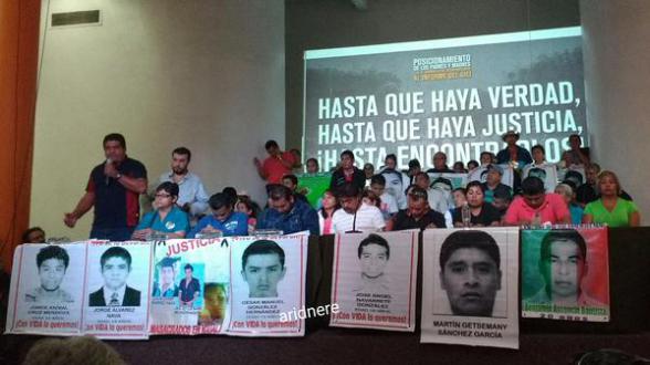 Publicado por POZOL COLECTIVO CIUDAD DE MEXICO, D.F. 6 de septiembre del 2015.- “Madres y padres teníamos la razón, nuestros hijos no estaban quemados”, expresaron familiares de los normalistas de Ayotzinapa, tras el reciente informe del Grupo Interdisciplinario de Expertos Independientes (GIEI) de la Comisión Interamericana de Derechos Humanos (CIDH). En conferencia de prensa, las madres y padres de los estudiantes desaparecidos el pasado 26 de septiembre en Iguala, Guerrero, evidenciaron que “ha quedado claro que lo del basurero de Cocula nunca pasó, que lo del basurero siempre fue una tortura para los padres”. “El gobierno ha querido pisar nuestra dignidad. Nos quisieron comprar. No vendemos a nuestros hijos”, expusieron. Así también exigieron se investigue al ex procurador Jesús Murillo Karam, por su investigación deficiente, y pidieron una reunión con el priísta Enrique Peña Nieto, junto con los expertos del GIEI. “A nosotros no nos importan sus cambios de gabinete, nos importa que nos entreguen a nuestros hijos”, compartieron las y los originarios del estado de Guerrero. “Somos pobres, pero no somos tarugos, el corazón de madre no se podía equivocar”, externaron ante la prensa nacional e internacional. “Mi hermano Aldo está muy grave. Le destrozaron la vida. Exigimos atención especializada”, compartió el familiar de Aldo Gutiérrez, quien fue el primer herido aquel 26 de septiembre en Iguala. “Soy Marbella Vargas Martínez, mamá de Edgar Andrés Vargas, gravemente herido el 26 de septiembre y que casi pierde la vida, porque militares no lo dejaron ir al hospital”, expuso la madre de familia y exigió atención médica para su hijo. “¿A dónde se llevaron a nuestros hijos? El Estado mexicano no solo le miente a los 43 padres de familia, sino a todo México”, afirmaron. “Hoy con la respuesta del #GIEI queda demostrada la participación de la Policía Federal, del Ejército”, aseguraron. “Llamamos a la sociedad mexicana y del mundo a que nos acompañen el 26 de septiembre”, invitaron las familias. “Cuando se dice que se debe reestructurar la investigación es porque hubo responsabilidad estatal y federal”, expuso Mario Patrón, director del Comité de Derechos Humanos “Miguel Agustín Pro Juárez”. “Desde la madrugada del 27 de septiembre, en todos los lugares donde hemos ido, en todo el mundo, hemos llevado la denuncia que nuestros compañeros”, añadieron las familias. “No les creemos, no creímos, lo peor es que sigue pasando como en Ostula, Apatzingán, Michoacán y la colonia Narvarte, en la Ciudad de México”, expresó uno de los estudiantes sobrevivientes de Ayotzinapa. “Esto fue un crimen de Estado y el Estado tiene que pagar por sus acciones y sus mentiras”, indicaron organizaciones defensoras de derechos humanos, como Tlachinollan y el Centro Prodh.