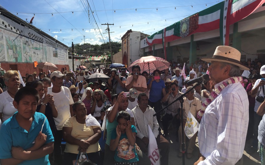 25amlo El presidente del Consejo Nacional de Morena señala que va por el cambio verdadero, al que los potentados se oponen y quieren que siga este régimen de corrupción, injusticias, privilegios, para que unos cuantos se sigan quedando con lo que es del pueblo y la nación. SANTA MARIA TEXCATITLAN, Oax. 25 de septiembre de 2015.- El presidente del Consejo Nacional de Morena, Andrés Manuel López Obrador, aseguró que no se rendirá, menos se venderá, al contrario, lucha hasta conseguir un cambio verdadero, pese a que le han robado dos veces la Presidencia de la República, en el 2006 y el 2012. “No somos rebeldes sin causa, ni tampoco de estos politiqueros a quienes les mueve la ambición del poder por el poder o el dinero; no luchamos por cargos, luchamos por ideales y principios”, señaló. El político de izquierda manifestó que se tuvo la necesidad de crear un nuevo partido político: Morena, porque quienes se creen amos y señores de México, compraron todos los partidos, debido a que no quieren que se lleve a cabo una transformación. Los potentados, prosiguió, quieren engañar a los ciudadanos con la maniobra de la alternancia, es decir, que entre un partido al gobierno, que salga y entre otro, pero que no cambie la política económica. “Puede estar el PRI, puede estar el PAN, puede estar cualquier partido, pero lo que ellos quieren siempre es que siga este régimen de corrupción, de injusticias, de privilegios, para que unos cuantos se sigan quedando con lo que es del pueblo y de la nación”, expuso. Subrayó que otro objetivo por el que se creó Morena, es que los dirigentes del PRD se ladearon, se fueron con Enrique Peña Nieto para firmar el Pacto por México, que no es más que Pacto contra México. Los diputados y senadores perredistas, agregó, aprobaron que aumentaran los precios de las gasolinas, el diésel, que incrementaran los impuestos y le abrieron la puerta a Peña para que pudiera llevar a cabo las reformas laboral, educativa, fiscal y energética, que afecta a los mexicanos y a los bienes nacionales. Murat quiere heredar la gubernatura a su hijo Por otra parte, Andrés Manuel López Obrador alertó que es probable que el candidato del PRI al gobierno de Oaxaca sea el hijo del ex mandatario José  Murat, Alejandro Murat, quien es un junior, tiene propiedades en el extranjero, residencias y departamentos en Nueva York y Miami. En Santa María Texcatitlán, Oaxaca, advirtió que si José Murat, cuando fue gobernador de la entidad, ni siquiera llegó a conocer 200 de los 570 municipios de Oaxaca, Alejandro Murat no conoce ni 50 municipios oaxaqueños. El ex gobernador, puntualizó, “cree que los cargos son hereditarios, cree que vivimos en una monarquía y se pueden heredar los cargos, se les olvida que vivimos en una República, y que es el pueblo el que elige, que es el pueblo el que decide”. Y por el lado del PRD, informó, se aliará con el PAN, que es lo mismo, y por ello, comentó a los oaxaqueños que existe un camino distinto que es Morena, que postulará a sus candidatos y que los ciudadanos decidan de manera libre lo que es más conveniente. Morena participará en las elecciones para renovar al gobernador y los presidentes municipales de Oaxaca en el 2016 y postulará a sus candidatos, porque “no somos más que nadie, pero tampoco somos menos que nadie”. Llamó a los oaxaqueños a unirse, porque solo el pueblo puede salvar al pueblo, no pelearse por cuestiones de partido, porque se afecta a todos cuando suben el precio de la gasolina, hay desempleo, se abandona al campo. Morena, instrumento de lucha al servicio del pueblo El ex candidato presidencial explicó que Morena es un instrumento de lucha al servicio del pueblo y para el pueblo, no es la búsqueda por los cargos, “porque no se trata del quítate tú, porque quiero yo, no es la ambición del poder por el poder o la ambición al dinero, lo que queremos es una transformación”. Recordó que el año pasado, Morena obtuvo su registro como partido político, el siete de junio fue la primera participación en elecciones y le fue bien, pese a que la mafia del poder quería aplastarlo. Ejemplificó que Morena fue el partido político que obtuvo más votos en la Ciudad de México, ganó en la capital de la República y en otras partes, y “vamos de nuevo a buscar el cambio verdadero en el 18, porque la tercera es la vencida, vamos a seguir luchando”. Recordó la gira que hizo por 570 municipios de Oaxaca y comentó que es un privilegio visitar los pueblos marginados y pobres de la entidad y del país, porque quienes viven en la ciudad tienen más forma de enterarse de lo que sucede, pero en las zonas marginadas no se pueden informar. Dejó la esperanza de que cuando triunfe, Morena ayudará a la gente humilde y pobre, como lo hizo cuando fue jefe de Gobierno de la Ciudad de México, donde, “atendimos a todos, escuchamos a todos, respetamos a todos, pero la preferencia se la dimos a la gente humilde y pobre”. Aseguró que si gana Morena en Oaxaca, se repavimentarán con concreto 300 caminos de los 570 que están actualmente en mal estado y asimismo, para dar trabajo a las personas, se quede el presupuesto en las comunidades y con ello evitar que los contratistas se lleven el dinero. En el municipio de Valerio Trujillo, Andrés Manuel explicó que recorre el país para informar que hay un movimiento, una lucha, de manera sincera, a favor del pueblo de México. Expuso que tiene la obligación de informar a la ciudadanía sobre la realidad del país y puso de ejemplo que dijo que el PRI iba a llevar al despeñadero a los mexicanos y es lo que desgraciadamente sucede. Ahora, indicó, da a conocer que hay un camino nuevo, ya no hay que seguir en el camino trillado de siempre, existe la alternativa que es Morena y por eso, va a informar. Pidió mantener la fe y la esperanza, porque no hay una razón para que el pueblo sufra, porque México es de los países con más recursos natur