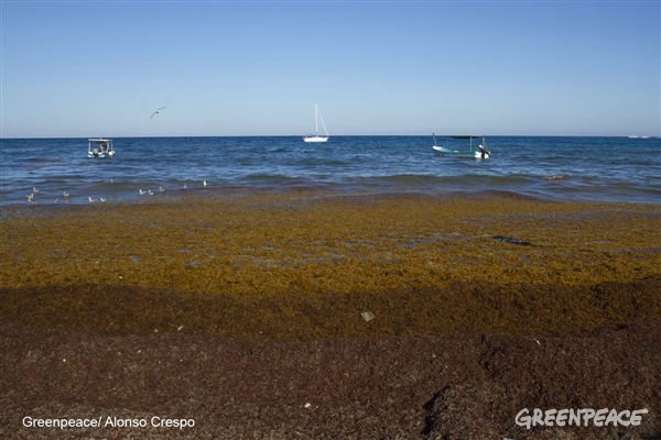 CAMPECHE, Cam. 6 de octubre del 2015.- La agrupación ambientalista internacional Greenpeace reveló que el barco Esperanza ya se encuentra en el Océano Atlántico, específicamente en aguas frente a la Península de Yucatán, donde sus activistas e investigadores de la Universidad Autónoma de Campeche (UAC) iniciaron la toma de muestras de agua y sargazo, para buscar la presencia de fertilizantes en el mar u otros agrotóxicos empleados en la agricultura, que podrían ser causa de estos florecimientos algales inusuales en la Riviera Maya. En un artículo denominado “¿Lo que comes mancha el mar?”, atribuido a Edith Martínez, la organización ecologista manifestó que “en los últimos meses, el agua turquesa del mar en la Riviera Maya que atrae a turistas de todo el mundo, cambió de color: se volvió verde, café y hasta roja debido a las grandes cantidades de sargazo que llegaron a sus costas”. “El sargazo es un tipo de alga marina que llega a las costas periódicamente, sin embargo, este año la cantidad de algas que se presentaron en las playas de Quintana Roo fueron descomunales”, expresó. “¿Eso es malo? Existen varias hipótesis al respecto. Por ejemplo, hay quienes dicen que la presencia de grandes cantidades de sargazo en la Riviera Maya se debe al cambio de las corrientes marinas por el calentamiento global”, indicó. “Otros supuestos apuntan a que hay más sargazo porque crece más rápido, debido a la presencia de más nutrientes en el mar originado por las actividades humanas –materia orgánica o fertilizantes provenientes de la agricultura-“, apuntó. Expuso que “las teorías pueden ser muchas, lo cierto es que, como todo en la vida, los excesos pueden tener impactos negativos en el medio ambiente y la vida de las comunidades. Las grandes cantidades de sargazo afectaron al turismo, principal actividad económica de la región”. “Las toneladas de estas algas que han llegado a las costas, pueden tener un origen incierto, y es tarea de autoridades preocupadas y responsables de su entorno, encontrar el origen. Sin embargo, en México esto no sucede así, el gobierno en sus diferentes niveles –local, estatal y federal- se han preocupado más por retirarlo, que en tratar de entender y detener este fenómeno”, agregó. Greenpeace pidió seguir la ruta de la investigación y ayudar a que la mancha no se expanda. Firma por la comida sana en www.greenpeace.mx/nomanchen