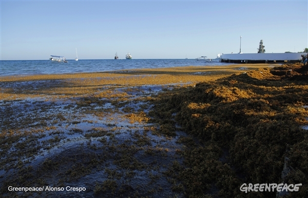 La organización ecologista informa que sus integrantes e investigadores de la UAC toman muestras de agua y sargazo en la Península, para comprobar si invasión de sargazo en playas de la Riviera Maya se debe a fertilizantes u agrotóxicos en el mar.