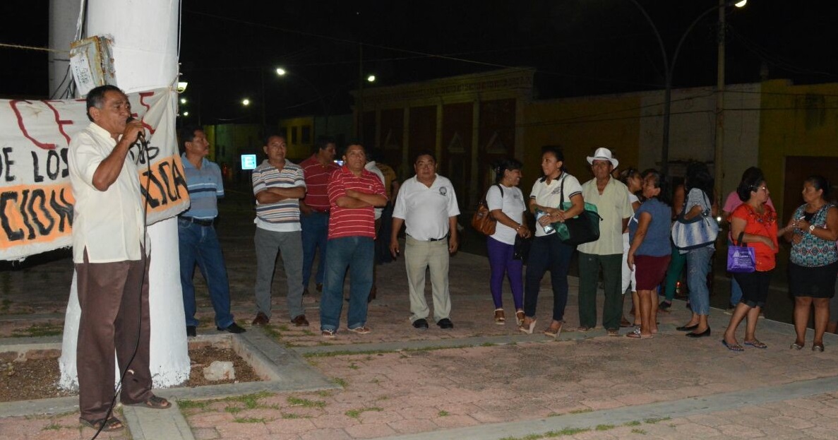 Los profesores campechanos realizan un mitin de dos horas en los bajos del Palacio Municipal de Calkiní e insisten en su demanda de derogar la Reforma Educativa.
