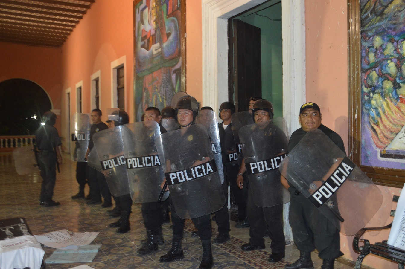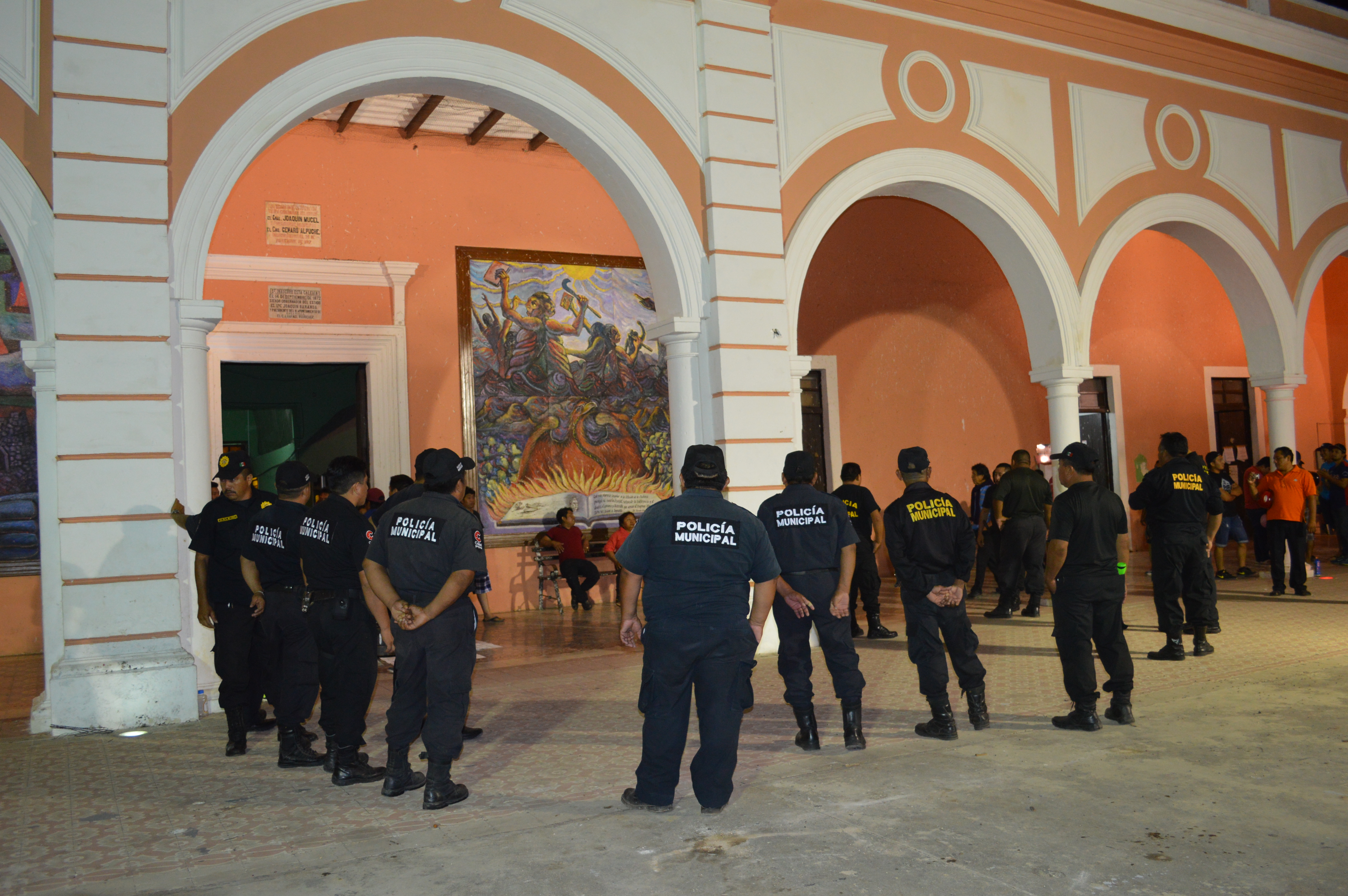 El operativo de rescate de la policía de “Alito” Alrededor de las 02:00 horas, se escuchó un impacto en la sala de recepción municipal y al acercarse, se pudo notar que la puerta estaba rota. Media hora después, empezaría la movilización de policías enviados por la Secretaría de Seguridad Pública estatal, cerca de 20 elementos se ubicaron en la puerta trasera del Palacio, poniendo bancas como vallas, sin embargo, al percatarse de la salida de Emiliano Canul por la parte de atrás, los representantes de los medios de comunicación y los manifestantes se movieron también, esto ocasionó la molestia de los elementos policiacos, pues aseguraron que se estaba afectando su operativo, usando palabras altisonantes en contra de la prensa. Un rato antes, habían llegado dos camionetas con antimotines, presuntamente policías del municipio de Hecelchakán, ya eran más de 20 las camionetas de la policía estatal y municipal, rápidamente los antimotines se posicionaron en la puerta lateral y ésta se abrió para dejar salir al edil que recibió gritos de repudio a su labor, subió a la camioneta de la Policía Estatal Preventiva y fue escoltado por cuatro camionetas más, entre estatales y municipales. A pesar de la salida del alcalde, los manifestantes no se movieron de la sede municipal, y los policías continuaron las rondas por las calles aledañas, en caravana de camionetas, entre estatales y municipales, y al pasar frente a ellos, fueron aplaudidos, en son de rechazo, por su gran labor al proteger a las autoridades, que son denunciadas públicamente de corrupción.