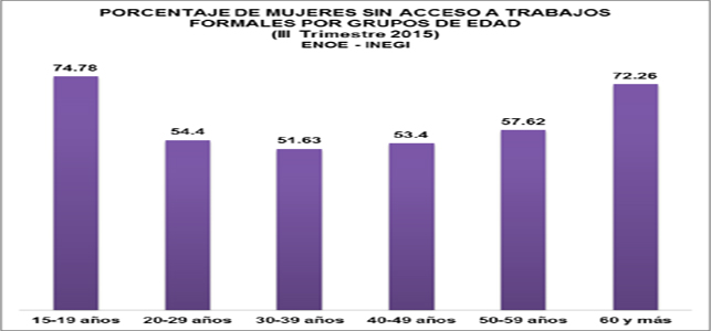 MONEDERO/Especial Por Carmen R. Ponce Meléndez* Cimacnoticias Si bien las perspectivas para las y los jóvenes que acceden al mercado de trabajo parecen ahora más favorables que en los cinco años anteriores, no deben pasarse por alto los perjuicios que sufren las personas que han pasado por largos periodos de desempleo o que, en tiempos de baja demanda de mano de obra, se han visto obligadas a aceptar trabajos poco satisfactorios. La población joven sigue sufriendo las consecuencias de la crisis económica y de las reformas políticas instauradas para hacerle frente. En países con el nuestro, para una joven sin experiencia laboral el encontrar trabajo, y más aún trabajo a tiempo completo, es una lucha ardua y larga. Las jóvenes económicamente activas siguen estando desempleadas o trabajaban, pero aun así viven en condiciones de pobreza, porque sus trabajos son muy precarios. Tienen los sueldos más bajos y no cuentan con prestaciones laborales, son informales (“Tendencias mundiales del empleo juvenil 2015. Promover la inversión en empleos decentes para los jóvenes”, Organización Internacional del Trabajo). Como se ilustra en la gráfica, para el segundo trimestre de 2015 y conforme a información generada por la Encuesta Nacional de Ocupación y Empleo (ENOE) del Inegi, el porcentaje más alto de empleos informales para las mujeres se ubica en el grupo de 15 a 19 años, con 74.78 por ciento. Quiere decir que siete de cada 10 mujeres jóvenes de 15 a 19 años están en la informalidad y en el siguiente rango de edad (20 a 29 años) la proporción de informalidad es de más de la mitad (54.4 por ciento). Sin lugar a dudas, son las jóvenes las que absorben los empleos más precarios. Por eso la OIT propone promover la inversión en empleos dignos para las y los jóvenes. La edición de 2013 del informe “Tendencias mundiales del empleo juvenil” (OIT, 2013) estableció la premisa de que “no es fácil ser joven en el mercado de trabajo actual”, aludiendo a la persistencia de la crisis del empleo, las largas filas para encontrar trabajo y los desafíos cada vez mayores a los que debían hacer frente las y los jóvenes para obtener un empleo estable. A pesar de algunas señales de “buenas noticias”, la inestabilidad de la situación continua y la tasa de desempleo juvenil mundial sigue estando al día de hoy muy por encima de la tasa de 11.7 por ciento previa a la crisis (en 2007). En general, dos de cada cinco (42.6 por ciento). Frente a esas estadísticas, es acertado aseverar que aún no es fácil ser joven en el mercado laboral actual. En México, el desempleo provocado por la crisis económica de 2008 fue más agresivo con las mujeres jóvenes. Para ellas en 2007 la tasa de desempleo abierto (TDA) era de 7.7, y para 2011 ya había crecido a 10.5, mientras que en los hombres era de 9.0 (Datos ENOE-Inegi, II trimestre). Otro signo inequívoco de esta precariedad laboral es el hecho de que en las jornadas extensas –de 35 a 48 horas– las mujeres sólo participan con el 36.6 por ciento, frente a una participación masculina de más del 60 por ciento. Cabe señalar que en estas jornadas extensas de trabajo el salario puede ser mejor. El número de mujeres que trabaja sin prestaciones laborales, en la informalidad –básicamente mujeres jóvenes–, asciende a 11.3 millones. Respecto al III trimestre de 2014 la informalidad laboral creció 2.4 por ciento; el crecimiento más alto se registró en empresas, gobierno e instituciones. Significa que son empleos sin prestaciones (informales) generados en empresas formales (datos de ENOE-Inegi, III trimestre 2015). Informalidad laboral=jóvenes=pobreza. Esta triada no permite beneficiarse del “bono demográfico”. En los países en desarrollo este bono debe significar facilitar a las y los trabajadores jóvenes la salida de la pobreza. Para la OIT, tanto hombres como mujeres jóvenes de los países en desarrollo siguen inmersos en condiciones de empleo vulnerable y pobreza derivados de las irregularidades laborales, así como de la falta de empleo formal y de protección social. En 2013, más de un tercio (37.8 por ciento) de las y los jóvenes con trabajo en los países en desarrollo vivía con menos de 2 dólares de Estados Unidos al día. Por lo tanto, a escala mundial, la pobreza de los trabajadores afecta a 169 millones de jóvenes. El número asciende a 286 millones si se incluye a jóvenes que viven en el límite de la pobreza (con menos de 4 dólares de EU al día). Vale recordar que aquí el Salario Mínimo es de 70 pesos diarios, equivalente a 4.4 dólares diarios. En México y dada la situación del empleo juvenil, éste debe ser una prioridad en las políticas públicas, pero no lo es. De hecho es una recomendación del organismo internacional. Según la OIT: “Aumentar las inversiones en empleos dignos para jóvenes es la mejor manera de asegurar que la juventud pueda llevar a cabo sus aspiraciones y participar activamente en la sociedad. También es una inversión en el bienestar de las sociedades y del desarrollo inclusivo y sostenible”.