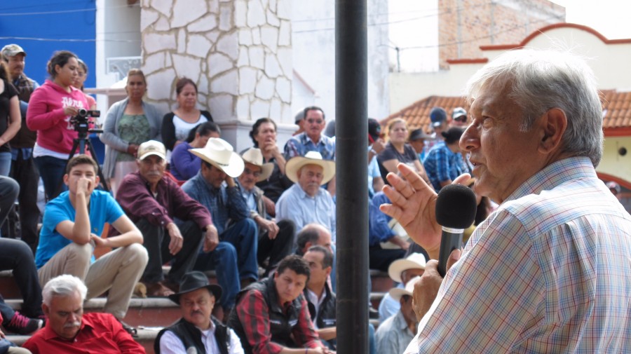 MEZQUITAL DE ORO, Zac. 3 de diciembre de 2015.- Andrés Manuel López Obrador subrayó que no habrá mejoría en México, si sigue la mafia política dominando en el país, y señaló que “duele decirlo, pero entre más dure, habrá más desempleo, más pobreza, más inseguridad, más violencia, más sufrimiento para el pueblo de México”. El dirigente nacional de Morena aseguró que la decadencia de México es por culpa de la corrupción y el mal gobierno, porque el cártel de Los Pinos, encabezado por Enrique Peña Nieto, se ha dedicado a saquear, a robar los bienes de la nación y del pueblo, pese a que el país tiene muchas riquezas y un pueblo trabajador. En el Mezquital del Oro, Zacatecas, López Obrador insistió que México es un país rico con un pueblo pobre, porque el principal problema es la corrupción y por eso Morena lucha para terminar con la corrupción, lograr el renacimiento de México. Sostuvo que el presupuesto público de este año es de cuatro billones 600 mil millones de pesos, el problema es que no se distribuye con justicia, se queda arriba y los políticos corruptos se roban el 10 por ciento, es decir, 460 mil millones de pesos, lo que equivale a dos sexenios del presupuesto de Zacatecas. Indicó que si se limpia de corrupción al gobierno, se podría sacar adelante al país y habría dinero para rescatar al campo del abandono en que se encuentra, fijar precios de garantía para los productos del campo, crear empleos, garantizar el bienestar del pueblo sin necesidad de aumentar los impuestos, sin endeudar al país, solo cortando de tajo con la corrupción que es la propuesta de Morena. Puso de ejemplo que los guatemaltecos metieron a la cárcel a su presidente Otto Pérez Molina, porque se robó 40 millones de pesos, Pérez Molina no llega ni a carterista en comparación con el corrupto de Peña Nieto, y en México nunca ha pisado la cárcel un presidente, es más en la Constitución se establece que al presidente en funciones no se le puede juzgar por corrupción. Expuso que hay países donde no hay corrupción como Suecia, Dinamarca, Noruega, Finlandia y tampoco hay pobreza, hay una clase media fuerte, hay igualdad, y en México por la corrupción hay pobreza, una monstruosa desigualdad social, desempleo y se desató la inseguridad y la violencia. Planteó que además de terminar con la corrupción es necesario terminar con los privilegios de los altos funcionarios públicos como son los sueldos elevadísimos y gastos extravagantes como el avión de lujo que se acaba de comprar Enrique Peña Nieto que cuesta 7 mil 500 millones de pesos, es para 280 pasajeros, tiene dormitorios, restaurante, más el mantenimiento y la ampliación del hangar presidencial son 10 mil millones de pesos. El gasto del avión de Peña que significará 10 mil millones de pesos es lo que significa 750 años el presupuesto de Mezquital del Oro, dijo al comentar que el problema es que los políticos corruptos se roban el dinero y se dan lujos, viven colmados de atenciones, de privilegios, Peña Nieto es como un pequeño faraón acomplejado y corrupto. Anunció que el triunfo de Morena en el 18, se venderá el avión de lujo de Peña, así como las flotillas de aviones y helicópteros que tiene el gobierno federal, porque no puede haber gobierno rico con pueblo pobre. Indicó que si hay salida en el país, si se lleva a cabo un cambio verdadero y por eso Morena significa cambio verdadero, y convocó a los zacatecanos a que todos ayuden a sacar adelante al país, a Zacatecas, por las nuevas generaciones. Pidió mantener la unidad entre los habitantes del Mezquital del Oro, solo el pueblo puede salvar al pueblo, solo el pueblo organizado puede salvar a la nación, porque el problema está arriba, entre los 100 integrantes de la mafia del poder, solo viven por temporadas en México, se la pasan en sus mansiones en el extranjero. Precios de garantía a productos del campo El político de izquierda manifestó que se fijarán precios de garantía para los productores del campo, para que se le pueda pagar 14 pesos el kilo de frijol al productor y si es necesario, el gobierno compre las cosechas, que se constituya una comercializadora para que se le pague bien al productor, porque se tiene que rescatar al campo del abandono. “La clave para sacar al campo del abandono es que haya precio por el producto, solo con eso, si se garantiza que va a haber precio, ya la misma gente ve cómo le hace para conseguir, arar la tierra, cómo le hace para comprar la semilla, cómo le hace para el fertilizante, si sabe que le van a pagar bien”, explicó, al decir que actualmente el productor tiene que vender todo lo que produce y comprar caro todo lo que necesita. Expuso que hace 25 años, en Tabasco había un millón 500 mil cabezas de ganado, ahora hay 500 mil, un millón menos en todo el periodo, porque desde el Tratado de Libre Comercio empezaron a meter carne congelada del extranjero y tumbaron el precio del ganado, llegó a valer una vaca 3 mil pesos. Lo que sucedió en los últimos dos años, prosiguió, como no hay ganado, hay crisis en el mundo, porque no hay carne suficiente, ahora subió el precio del ganado, sin que el gobierno hiciera nada, es más lo que sucedió ni lo saben los gobernantes, empezó a subir el precio y ahora ya recorre el país y ya están de nuevo los potreros con ganado, porque ya hay precios. Mencionó que si los precios de garantía se aplican para la agricultura y la ganadería a nivel nacional, se recuperará el campo. Otro compromiso, dijo, es que no se le cobre moches a los pequeños contratistas, porque tienen que dar el 10 o 20 por ciento para que le den una obra; otro programa es el mejoramiento, ampliación, construcción de vivienda. Asimismo, añadió, se darán apoyos a madres solteras para que sus hijos no tengan que dejar la escuela; que haya en cada municipio una oficina de atención al migrante, que se apoye a los paisanos y se establezca una relación con 