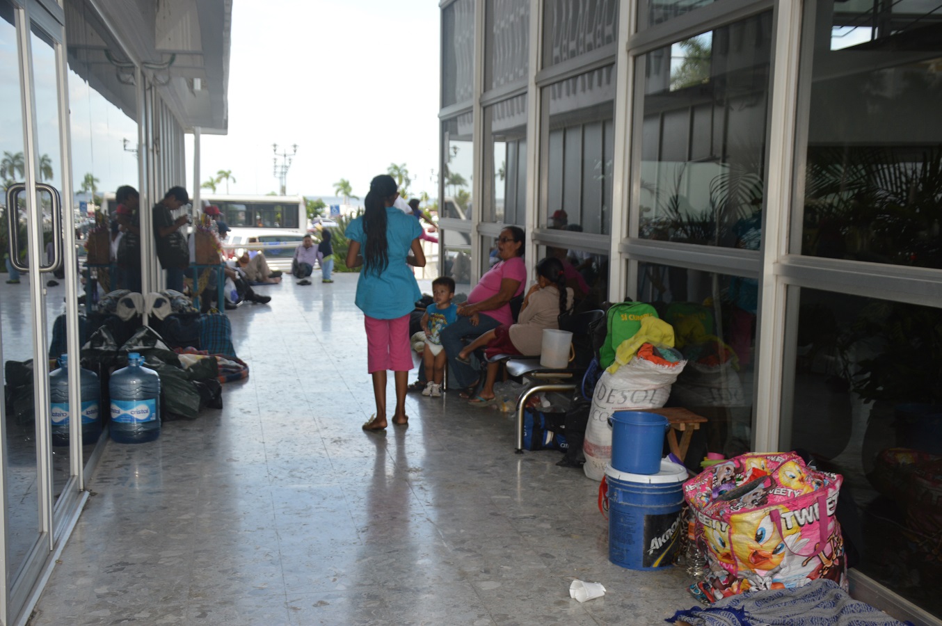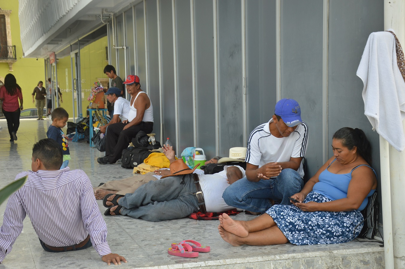 Por segundo día, pernoctan pobladores de El Sacrificio, Carmen, en los bajos del Palacio de Gobierno.