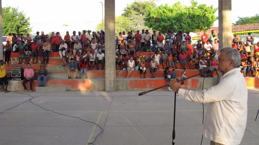 SANTIAGO TAPEXTLA, Oax. 9 de diciembre del 2015.- Andrés Manuel López Obrador declaró que Morena está a favor de los maestros de Oaxaca y de México, aunque les moleste a los integrantes de la mafia del poder y precisó que también está en contra de la Reforma Educativa, porque no es para mejorar la educación, sino es para someter y perjudicar al magisterio. En el marco de la evaluación que lleva a cabo el gobierno de Enrique Peña Nieto a los maestros en el país, el presidente del Comité Ejecutivo Nacional de Morena lamentó ayer la muerte del profesor de Chiapas. En su cuenta de Twitter, López Obrador publicó: “Ojalá y recapacite EPN. La reforma educativa no debe imponerse. Diálogo y acuerdo, no violencia”. En San José Estancia Grande, cuestionó: ¿Cómo se va a mejorar la calidad de la enseñanza con la Reforma Educativa sin los maestros, sin un acuerdo con los maestros, sino por la fuerza, y citó lo que decía el presidente de México, Benito Juárez: “nada por la fuerza, todo por la razón y el derecho”. Asimismo, recordó que acompañó a Gabino Cué cuando fue candidato a la gubernatura a recorrer el estado, y afirmó que “iba bien Gabino, no iba tan mal, pero hace como tres, cuatro meses, lo sometieron los de la mafia del poder e hicieron que se le lanzará en contra de los maestros de Oaxaca”. “Y por eso, Gabino cometió un grave error, porque no debió hacerle caso a la mafia del poder para reprimir a los maestros de Oaxaca”, indicó. En Santiago Tapextla, llamó a los habitantes del municipio a cuidarse de los engaños que llevan a cabo los mañosos en vísperas de las elecciones, porque ellos tienen un truco bien ensayado, primero empobrecen al pueblo y luego cuando hay elecciones compran los votos o entregan despensas, frijol con gorgojo, materiales de construcción y animales como pollo, patos, chivos, borregos, puercos. Calificó como “marranos, cerdos” a quienes compran votos, trafican con la pobreza de la gente, ese es su negocio, se quedan con las tajadas más grandes del presupuesto, después reparten migajas, dadivas a la gente humilde y pobre. Explicó que durante las campañas electorales, los políticos visitan a los habitantes de los pueblos, pasado dicho periodo, se olvidan de los ciudadanos y de sus lugares de origen, y eso no debe de ser así, se tiene que atender las demandas de todos, pero más la gente humilde y pobre. Aseguró que él es diferente a los políticos corruptos, porque lleva cerca de 40 años luchando por los mexicanos y los pueblos e informó que es originario de un pueblo de Tabasco, parecido al municipio de Tapextla, y desde que terminó la escuela lucha por la gente pobre, por la justicia y la democracia. Mencionó que su presencia en el lugar es para informar que existe el partido político Morena y que lucha en todo el país para que haya un cambio verdadero, para que a todos se ayuden, se atiendan, se respeten a todos, pero se le de preferencia a la gente humilde. Pidió a los oaxaqueños a tener confianza y mantener la fe, así como no se acostumbren a la mala vida, porque la decadencia en el país es responsabilidad del mal gobierno, así como la corrupción y se terminan con esos problemas se logrará el renacimiento de México y se sacará de la pobreza al pueblo de México. Aclaró que los integrantes de Morena no luchan por los cargos, si fuese por cargos “yo ya sería presidente, si le hubiese yo garantizado a los de la mafia del poder que no iba a cambiar nada, me hubiesen dejado pasar, no nos hubiesen robado dos veces la Presidencia de la República, pero de qué sirve llegar así, nada más por el cargo, sin hacer nada en beneficio del pueblo, eso no es lo que nosotros buscados”. “Arriba los de abajo y abajo los privilegios” El político de izquierda expuso que Morena quiere llevar a cabo un cambio verdadero, es decir, lo que dice esta frase: “arriba los de abajo y abajo los privilegios”. Consideró que aún sin que se llegue a internalizar la cifra, el dato, si es necesario, es un deber que sepan que el presupuesto público para 2015 es de 4 billones 600 mil millones de pesos, es decir, un cerro de dinero de los mexicanos, pero ese dinero se queda arriba y por eso hay mucha pobreza. En San José Estancia Grande, alertó que los políticos corruptos se roban el dinero del presupuesto público, empezando con Enrique Peña Nieto quien tiene empresas contratistas como OHL e Higa a quienes les entrega todas las obras de construcción del gobierno federal. Puso de ejemplo que Peña Nieto dio un contrato de 55 mil millones de pesos a la empresa Higa de Armando Hinojosa, para que construya un acueducto para trasladar el agua desde el río Pánuco, que está en los límites de Veracruz a Tamaulipas a Monterrey, Nuevo León. La compañía Higa supuestamente le vendió una casa a Peña de 200 millones de pesos, tiene piso de mármol, con sistema de calefacción en el piso, tiene exquisiteces, porque cambia de tonalidad la luz de la casa de acuerdo al estado de ánimo en que están los dueños, o sea, que esa casa siempre va a estar en oscuras, pero fue un moche, una mordida para el pequeño faraón, acomplejado y corrupto. Tanto en Santiago Tepextla, Santo Domingo Armenta y San José Estancia Grande, insistió que si pide que mantengan la esperanza, es porque en México hay muchas riquezas de todo el pueblo, hay presupuesto suficiente, se lo roban, pero si se combate la corrupción se podrá sacar adelante al país. “Nosotros lo que queremos es que se acabe con la corrupción y que el dinero del pueblo se distribuya con justicia, alcance a todos, miren si ese dinero se manejará con honradez y si es del pueblo, si se entregará en partes iguales, somos 27 millones de familias en el país, alcanzaría para entregar 12 mil pesos mensuales por familia”, explicó. Jara “va a actuar con rectitud, con integridad, con honestidad” Al presentar al promotor de la soberanía nacional de Moren