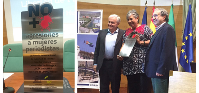 Lucía Lagunes, Premio Internacional de Libertad de Prensa 2015/Imágenes retomadas de Twitter: @InfoUMA Por Anayeli García Martínez Cimacnoticias CIUDAD DE MEXICO, D.F. 16 de diciembre del 2015.- “Cada vez que se asesina, se silencia o se intimida a un periodista, la sociedad se queda sin el derecho a la información”, dijo la periodista Lucía Lagunes Huerta, al recibir el Premio Internacional de Libertad de Prensa 2015 que otorga la Universidad de Málaga (UMA) y la Cátedra UNESCO de Comunicación. En la ceremonia, que se realizó en la sede de la UMA, en la Costa del Sol, en España, la también directora de Comunicación e Información de la Mujer A.C. (CIMAC) dedicó el reconocimiento a las reporteras mexicanas “que cada día alimentan la democracia evidenciando los abusos de poder y reivindicando la vida y libertad de las mujeres”. Socióloga, reportera y columnista, Lagunes Huerta lleva 24 años ejerciendo el periodismo desde un enfoque de género, Derechos Humanos y sin sexismo, trinchera desde la cual comenzó a documentar la situación social de las mujeres y más tarde a hacer visible la violencia contra aquellas que reportaban las noticias. Es por ello que al recibir este reconocimiento alertó sobre el riesgo que vive el gremio periodístico: “Desde 2005, México se repite año tras año como una de las naciones de Latinoamérica con mayor número de periodistas asesinados, y a la comunidad internacional le falta alzar la voz para detener lo que está ocurriendo”, dijo. Hace cinco años, Lagunes Huerta coordinó el informe diagnóstico “Violencia contra mujeres periodistas en México 2010-2011”, editado por CIMAC con el apoyo de la Fundación Heinrich Böll, la primera investigación en su tipo que demostró que las reporteras también son agredidas por realizar su labor informativa. En ese primer diagnóstico, se dijo que, aunque las estadísticas de violencia no incluyeran a las mujeres, en realidad había muchas agresiones contra ellas, tan sólo de 2002 a 2011 se documentaron 94 casos de violencia, el 85.4 por ciento directamente ligados el ejercicio de su oficio. En seguimiento a esa investigación, en 2014 Lagunes Huerta dirigió el informe “Impunidad. Violencia contra Mujeres Periodistas. Análisis legal” que evidenció cómo las agresiones contra reporteras quedan impunes porque se minimizan, no se investigan o las indagatorias se realizan con estereotipos, mientras que las víctimas quedan a la deriva y sin medidas de seguridad para ejercer su trabajo. La espiral de violencia no ha parado, durante el primer semestre de 2015, de enero a junio, el Programa de Libertad de Expresión de CIMAC ha documentado 55 casos de agresiones contra comunicadoras en 24 estados del país, de los cuales destacan seis en la Ciudad de México y ocho en Veracruz, lugares donde reportear es una actividad de alto riesgo. Ante ello, la galardonada destacó que aunque en México no hay conflicto armado está en situación de guerra, como ejempló los reportes de los medios que indican que en la última década desaparecieron 26 mil personas, historias que han sido contadas por las reporteras. “Las mujeres periodistas fuimos las primeras voceras de estos andares, de estas historias y de estos dolores, pero no para hacer una gran tragedia en el papel, sino para poner voz de ciudadanas exigiendo justicia y a las autoridades que hagan lo que tienen que hacer, garantizar que la vida y la libertad de las personas esté dada por el simple hecho de ser personas”, resaltó. La autora de la columna “Zona de Reflexión” ha trabajado por un periodismo social y comprometido –y a favor de la población femenina– que también ha sido blanco de agresiones. En julio de 2008 y mayo de 2011 las oficinas de CIMAC en la Ciudad de México fueron allanadas pero en ambos casos la investigación no tuvo resultados y no se supo quiénes fueron los responsables. Al recibir el VI Premio Internacional de Libertad de Prensa, la también integrante de la Red Nacional de Periodistas y de la Red Internacional de Periodistas con Visión de Género se convirtió en la segunda mujer en ser reconocida por esta institución, después de la periodista congoleña Caddy Adzuba, quien desde 1996 ha denunciado las violaciones sexuales en África. En este contexto, el jurado, integrado por los decanos de la Asociación Española de Universidades con Titulaciones de Información y Comunicación (ATIC), destacó el compromiso de las periodistas mexicanas y de América Latina que son discriminadas o trabajan en un ambiente donde se trata de impedir el ejercicio honesto de la libertad de expresión.