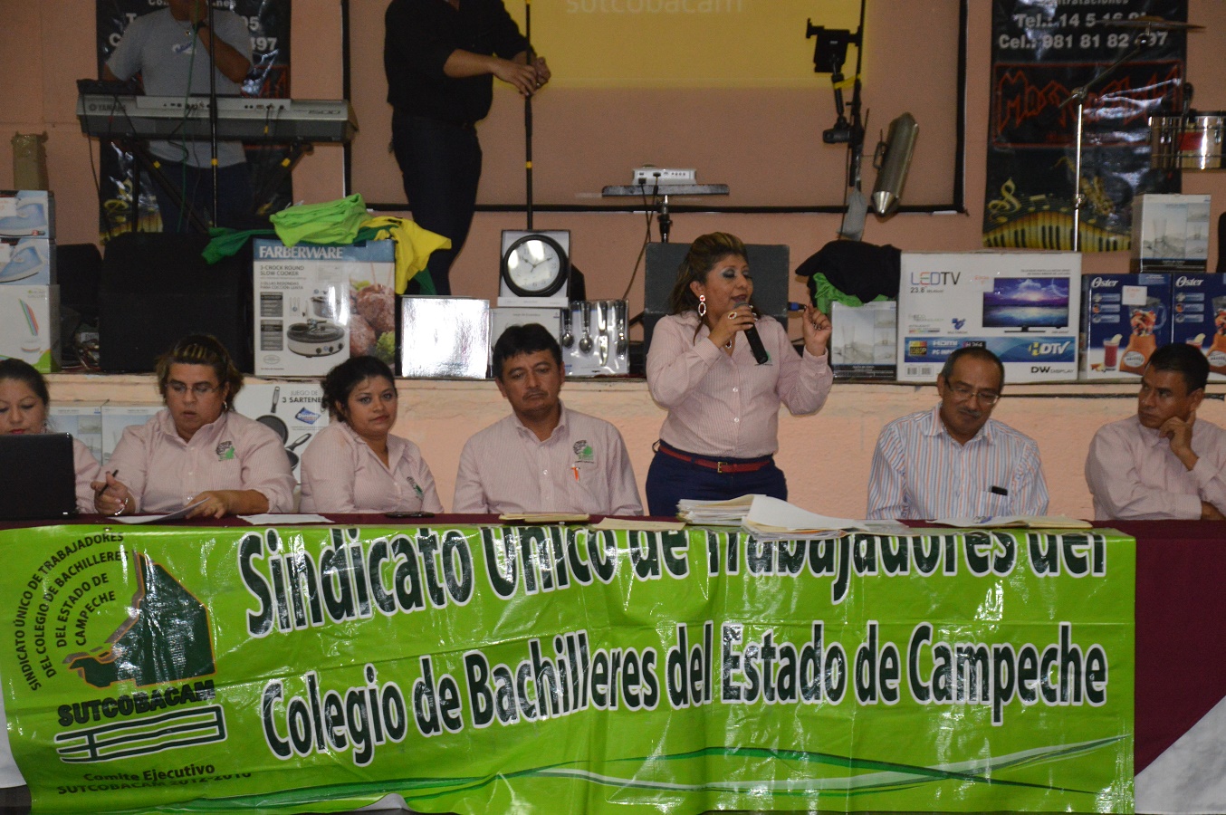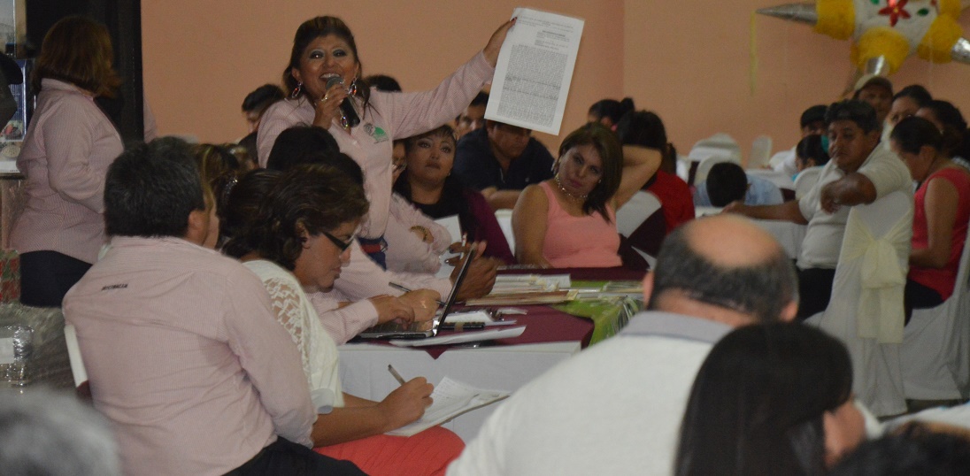 La secretaria general, Ana Isabel May Cardeña, rinde cuentas ante sus agremiados e informa que el Tribunal Colegiado declaró legal la huelga del 2014, pero que ya están avanzadas las negociaciones con la parte patronal.
