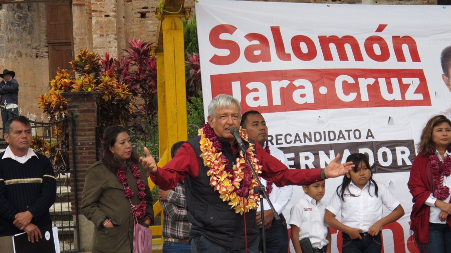 El dirigente nacional de Morena precisa que será integrada por todas las organizaciones de maestros, indígenas, campesinas, pescadores, comerciantes, transportistas para lograr una transformación del estado. SAN JUAN GUICHICOVI, Oax. 28 de enero deL 2016.- Andrés Manuel López Obrador anunció que Morena hará una alianza amplia con el movimiento social de Oaxaca, con todas las organizaciones de maestros, indígenas, campesinas, pescadores, comerciantes y transportistas, para lograr una transformación del estado. El político de izquierda recomendó de manera respetuosa unirse entre los oaxaqueños para sacar adelante al país, y dijo que se creó el partido político Morena que participará con una alianza con los pueblos, no con los partidos, ya se echaron a perder los dirigentes, aquí no está el problema, hay gente buena, trabajadora, el problema está arriba. “Perdemos el tiempo, nos entretienen peleándonos por partido, qué ganamos, si nos están aplastando a todos por parejo”, cuestionó, al proseguir que cuando aumentan los precios de las gasolinas afectan a todos, ni modo a quien del PRI, del PAN, del PRD o de Morena le hagan descuento en la gasolinera, no, es parejo, si no hay trabajo afectan a todos, si el campo está abandonado afectan a todos. “Con la llamada Reforma Educativa afectan a todos los maestros sean de la CNTE o del SNTE, qué ganamos con pelearnos aquí, nada, hay que hacerle caso a ese gran líder social oaxaqueño Ricardo Flores Magón que decía solo el pueblo puede salvar al pueblo y solo el pueblo unido y organizado puede salvar a la nación”, expresó. Acompañado por los promotores de la soberanía nacional de Morena en Oaxaca, Salomón Jara y de Guichicovi, Félix Rubén Escobar, aseguró que el presidente municipal del lugar no es tan corrupto como los de arriba en el estado y no hay más corrupción que la gente de la mafia del poder, porque “en todo esto hay nivelitos” Anunció que Morena tiene como precandidato en Oaxaca, Salomón Jara Cruz, y “no somos más que nadie, pero tampoco somos menos que nadie, vamos a participar y la gente nos va a apoyar, hemos ganado dos veces aquí en Oaxaca, ganamos en el 2006, en el 2012 cuando fui candidato a la Presidencia y vamos a volver a ganar la gubernatura”. Agradeció a Félix Rubén Escobar por ser representante de Morena en San Juan Guichicovi, ya que mucho tiempo ha gobernado el PRD y son bastante cerrados, se les olvida las cosas, además en el municipio, los mañosos han entregado despensas y eso es lo que se tiene que combatir, porque el tráfico con la pobreza de la gente es lo único que le queda a la mafia del poder. “Ahora son las practicas del PRI, son las practicas del PAN y ahora también el PRD”, subrayó al decir que Morena saca los votos de las clases medias y en las ciudades, y en las zonas pobres arrasa el PRI, el PAN y el PRD por el tráfico con la pobreza de la gente. López Obrador dio a conocer que ya no está en el PRD, porque los dirigentes de ese partido se fueron con Enrique Peña Nieto, firmaron el llamado Pacto por México, que no es más que el pacto contra México y por eso “tuvimos la necesidad de hacer” Morena para tener un instrumento de lucha verdaderamente independiente del pueblo y para el pueblo. “Y no formar parte de la comparsa de paleros, de alcahuetes que tienen los de la mafia del poder, hay muchos partidos, 10, pero ya nueve han sido apergollados, sometidos por la mafia del poder y lo único que buscan son los cargos ya es nada más la lucha del poder por el poder y también la ambición al dinero, no hay ideales, no hay principios, no se lucha por el pueblo, no se lucha por la nación”, explicó. Si no hay un cambio, no vamos a encontrar la salida como pueblo y nación El dirigente nacional de Morena manifestó que se construyó Morena para tener un partido verdaderamente que enfrente a la mafia del poder, porque los 100 potentados que se creen amos y señores de México son los responsables de la tragedia nacional, y por eso México se hunde, se empobrece más al pueblo. Los integrantes del mafia del poder, expresó, son los dueños del gobierno, secuestradas las instituciones y los Poderes: Ejecutivo, Legislativo y Judicial, ellos son El poder de los Poderes, controlan los medios de información para administrar la ignorancia en el país, así como los partidos políticos y para enfrentarlos se formó Morena. “Si no hay un cambio verdadero, no vamos a encontrar la salida ni como pueblo, ni como nación, es realmente indignante lo que está sucediendo, como en un país con tantas riquezas y un pueblo trabajador, hay tanta pobreza”, manifestó al señalar que la decadencia en el país se debe por el mal gobierno y la corrupción que es el principal problema. “Los llamados gobernantes son los que integran la banda de malhechores que más daña al país, es la banda que más roba, las autoridades, desde luego del presidente para abajo, esa es la banda que más daña al país, porque no tienen como propósito apoyar al pueblo, sino saquear a México”, explicó. Dijo que los gobiernos han aplicado la llamada política económica neoliberal y con ello han trasladado los bienes del pueblo y de la nación a particulares, ya vaciaron al país, desmantelaron a México como fue la entrega de los ferrocarriles. Recordó que el primer ferrocarril, de más de 600 kilómetros, que se construyó fue de la Ciudad de México a Veracruz, lo comenzó el presidente Benito Juárez, lo continuó el presidente Sebastián Lerdo de Tejada y Porfirio Díaz construyó 20 kilómetros de vías férreas y por eso la Revolución Mexicana se hizo a caballo y a ferrocarril. Después de 1910, prosiguió, se siguieron construyendo líneas férreas, llegan los tecnócratas de Carlos Salinas, Ernesto Zedillo, en un abrir y cerrar de ojos, acabaron con los ferrocarriles, fueron concesionados a los a llegados a Carlos Salinas, la vía del Istmo se la entregaron a