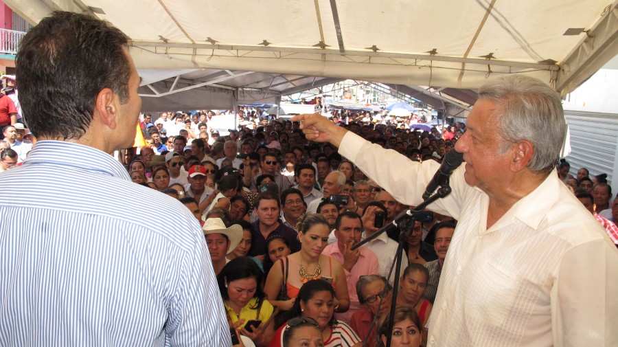 VILLAHERMOSA, Tab. 2 de febrero del 2016.- Andrés Manuel López Obrador hizo un llamado a todo el pueblo de Tabasco para hacer una alianza amplia con el candidato de Morena al municipio del Centro, Octavio Romero Oropeza, e insistió al convocar a los militantes del PRI, del PAN, del PRD, de todos los partidos y a los ciudadanos sin partidos, para que juntos saquen al estado del atraso en que se encuentra. El político de izquierda señaló que le tienen que explicar a los tabasqueños la estrategia perversa del gobernador Arturo Núñez, quien negoció con Enrique Peña para derrotar a Morena en la entidad y se enviar el mensaje a nivel nacional de que si en Tabasco no representaba nada, no ganaba, menos iba a ganar a nivel nacional, pero triunfó en la Ciudad de México. Dijo que se anuló la elección en el municipio del Centro y ahora el pueblo de Tabasco podrá demostrar que siempre ha estado a la vanguardia, adelante en las grandes transformaciones, además se harán valer los principios de Morena: no se miente, no se roba y no se traiciona a la gente. Recalcó: “Tenemos que unirnos todos los tabasqueños por esta causa y por la transformación de México, porque solo el pueblo puede salvar al pueblo, solo el pueblo unido y organizado puede salvar a la nación”, porque el problema no está abajo, sino arriba, en la mafia del poder, que es integrada por 100 políticos corruptos y traficantes de influencias. Sostuvo que el mal está arriba y los 100 potentados serán derrocados. El presidente del Comité Ejecutivo Nacional de Morena acompañó al registro a Octavio Romero Oropeza como candidato de Morena para participar en la elección extraordinaria del próximo 13 de marzo para renovar la presidencia municipal del Centro. En la asamblea informativa en Villahermosa, calificó a Romero Oropeza como una persona con principios, con ideales, honesta y por eso todos los tabasqueños tienen que ayudar en la elección extraordinaria y desde Centro, se iniciará la transformación de México. La elección del 13 de marzo, dijo, será el prólogo, la introducción de lo que se hará en el 2018. “Aquí vamos a demostrar que un grupo de traidores no va a poder detener la transformación”, apuntó. Pidió correr la voz, porque el triunfo de Morena en la presidencia municipal del Centro significará la aplicación de programas sociales como sería entregar mil 100 pesos mensuales a todos los adultos mayores y dicha medida se negó a llevar a la práctica el actual gobernador de Tabasco, Arturo Núñez, porque no tiene amor al pueblo. Para quienes preguntaron: Por qué rompió con Arturo Núñez, López Obrador respondió que se cansó de pedir a Núñez una, dos, tres, cuatro, cinco veces que apoyara a los adultos mayores, así como programas de apoyo a los tabasqueños, pero le entraba por un oído y la salía por el otro. Asimismo, expresó, Morena protegerá a los tabasqueños que siguen en resistencia civil pacífica en contra de los aumentos en las tarifas de la energía eléctrica, no se permitirá que se les corte la luz a los habitantes del municipio del Centro, porque el presidente municipal va a defender a todo el pueblo. “Es muchísimo lo que le debe la Federación a Tabasco, que lo que deben los usuarios de energía eléctrica a la Comisión Federal de Electricidad”, expuso, al decir que si no hay borrón y cuenta nueva, y una tarifa justa, continúa la resistencia civil y seguirá el apoyo al pueblo de Tabasco. Se suma el ex alcalde Evaristo Hernández Cruz Al señalar que recorre el país, a ras de tierra, no como Enrique Peña, quien es un faraón corrupto, López Obrador expresó que Villahermosa es una de las ciudades más abandonadas de México, es un desastre, no se resuelve el problema vial, ni tienen servicios públicos indispensables, y basura en los camellones. Aseguró que será transformada la capital de Tabasco cuando gobierne Octavio Romero Oropeza y adelantó que encabezará un equipo de desarrollo urbano para que el municipio haga honor a su nombre, así como se crearán empleos. Mencionó que el presidente del Comité Ejecutivo Estatal de Morena, Adán Augusto López promoverá amparos ante la reforma que va en contra de los trabajadores del ISSSTE. Agradeció la presencia de Evaristo Hernández Cruz y le dio la bienvenida a los hombres y mujeres de buena voluntad que ingresaron a Morena en Tabasco, solo se reserva el derecho de admisión si Arturo Núñez, Peña Nieto, Felipe Calderón o Vicente Fox, Manuel Andrade, Manlio Fabio Beltrones, si quisieran ingresar a Morena. En entrevista, Andrés Manuel manifestó sentirse contento, porque Morena con Octavio Romero Oropeza ganará la elección extraordinaria del 13 de marzo, donde se renovará la presidencia municipal del Centro. Dijo que los políticos corruptos son Arturo Núñez, porque traicionó en el pueblo de Tabasco, Roberto Madrazo, Enrique Peña Nieto, Vicente Fox y Felipe Calderón, y de esa lista es exonerado Evaristo Hernández Cruz, porque tomó la decisión de sumarse a la lucha que encabeza Morena. Todo el que está en el PRI, comentó, pero se arrepiente de todo lo que hizo mal y decide pasarse a Morena, puede ser perdonado. “Al momento que se sale del PRI, se limpió”, puntualizó.