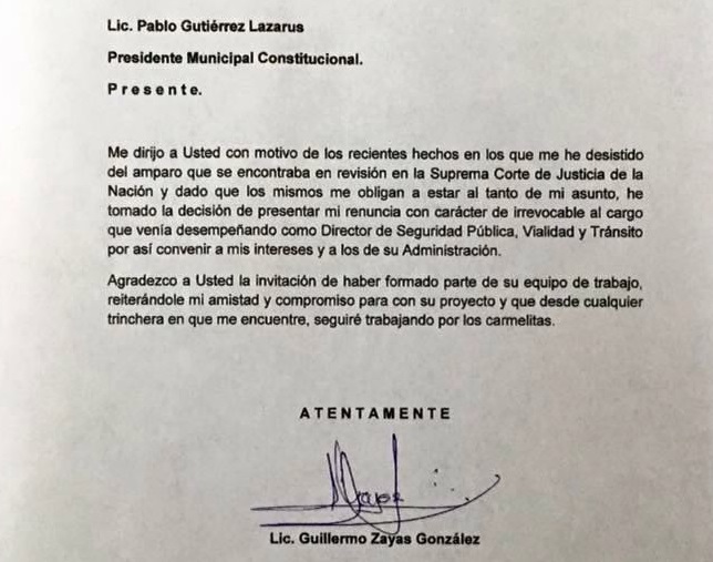 Por Ronny Aguilar CIUDAD DEL CARMEN, Cam. 18 de febrero del 2016.- El presidente municipal de Carmen, Pablo Gutiérrez Lazarus, sucumbió ante las presiones políticas del ilegitimo y espurio Alejandro Moreno Cárdenas y regidores, en su mayoría de su mismo partido, y aceptó la renuncia del director de la Policía Municipal, Guillermo Zayas González. Los impactos mediáticos y las presiones políticas del gobierno del Estado, que el mismo alcalde denunciara el lunes pasado, sumado a la oposición e insubordinación de su Cabildo, que le dio la espalda, por fin surtieron efecto y hoy, mediante comunicado, se informó que el alcalde había aceptado la salida de Zayas. El comunicado indica que “este jueves, el presidente municipal de Carmen, Pablo Gutiérrez Lazarus, aceptó la renuncia del director de Seguridad Pública, Vialidad y Tránsito Municipal, Guillermo Zayas González, quien se separa del cargo para atender asuntos de índole personal, quedando en su lugar como encargado de la DSPVyT, Rogelio Álvarez Lara”. El día de ayer, en entrevista concedida a Paginabierta.mx, el edil panista dejó entrever que se tomaría esta decisión, aunque no señaló que la fecha sería tan próxima, e insistió en que ha habido un trato indebido a la persona de Zayas. “Desde nuestro punto de vista, siempre ha habido un trato indebido en general en los medios de comunicación hacia el comandante Zayas, sin justificación, hay una tendencia que se ve claramente orquestada, para desacreditar al director de la Policía, incluso antes de su nombramiento, hubo muchas presiones, sin medir las consecuencias de esas acciones”, expresó. “Una persona es inocente hasta que se demuestre lo contrario, en su momento había un amparo, una defensa interpuesta ante la Suprema Corte y por arte de magia esta situación cambia en muy poco tiempo, hablando de que la impartición de justicia en el país es lenta, dio un cambio muy pronto y pareciera ser que el objetivo principal era hacerlo a un lado”, indicó. “Nosotros entendemos que a nivel federal, hay una propuesta del gobierno de generar el mando único y el área operativa de una policía municipal es algo esencial para llevar acabo el mando único, nosotros lo que queremos es que antes de la aplicación de un mando único, se modifique la Constitución y se haga lo que se tenga que hace conforme a la ley, no tenemos por qué ceder cuando la ley señala que Seguridad Pública, Vialidad y Tránsito son atribuciones exclusivas del municipio”, apuntó. Reconoció que “el comandante Zayas está en una situación muy complicada, porque se tiene que dedicar a su asunto, se tiene que enfocar a ver cómo se resuelve su caso, porque hubo un manejo bastante oscuro y eso le ocupa más que estar al tanto de la seguridad pública del municipio”. Reiteró que se está creando una inestabilidad en materia de seguridad. “Se está generando una sensación de incapacidad de parte de la administración municipal, para resolver temas en referencia a seguridad pública… todo enfocado al mando único”, meniconó. Planteó que no es el único lugar donde sucede esto, pues lo mismo está sucediendo en Mérida, donde el PAN gano el municipio y el PRI es gobierno, pues también hay operatividad del Estado para la implementación de la policía única.