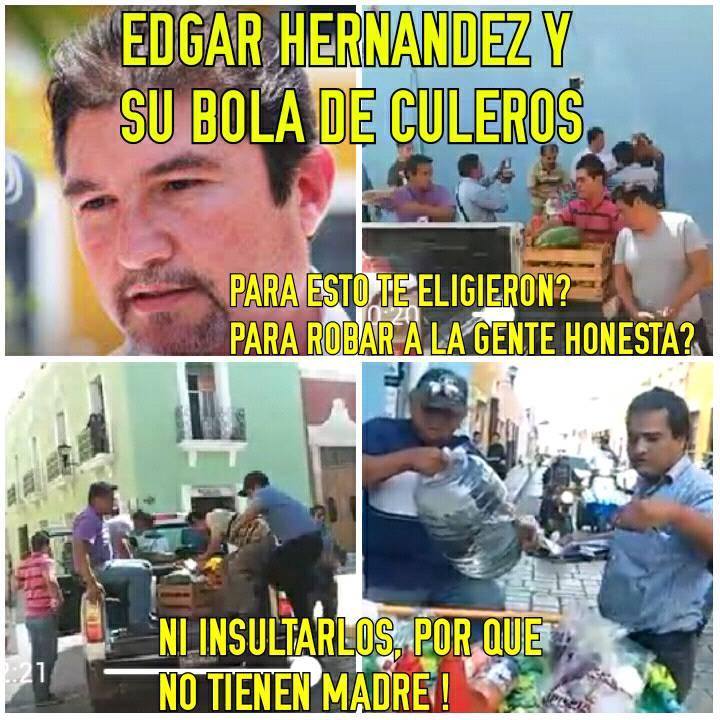 Por Ronny Aguilar CAMPECHE, Cam. 22 de febrero del 2016.- El Ayuntamiento de Campeche, encabezado por Edgar Hernández Hernández, prefiere la represión y desaloja a vendedores ambulantes del Centro Histórico, Patrimonio Cultural de la Humanidad, en lugar de implementar programas sociales de desarrollo económico, ante el señalamiento de la UNESCO de que el ambulantaje es producto de la carencia económica, el poco desarrollo y el deterioro social. Hace unos días, comenzaron a exhibirse unos videos en las redes sociales, que muestran a inspectores del Ayuntamiento capitalino, retirando violentamente a personas que laboran en el Centro Histórico, comerciando de manera semi-estacional, lo cual causó la molestia de la ciudadanía, pues en algunos casos, se les decomisaron los productos, cuando el comerciante solo busca ganarse la vida. La directora del Centro del Instituto Nacional de Antropología e Historia (INAH) en Campeche, Lirio Suárez Améndola, explica la razón por la cual el Ayuntamiento retira a los comerciantes semifijos del Centro Histórico, deja entrever la desobligación del Ayuntamiento que intenta hacer invisible a estas personas, que son una muestra del freno económico y las pocas oportunidades, una realidad en el estado, que no quieren que sepa la Organización de las Naciones Unidas para la Educación, la Ciencia y la Cultura (UNESCO, por sus siglas en inglés).