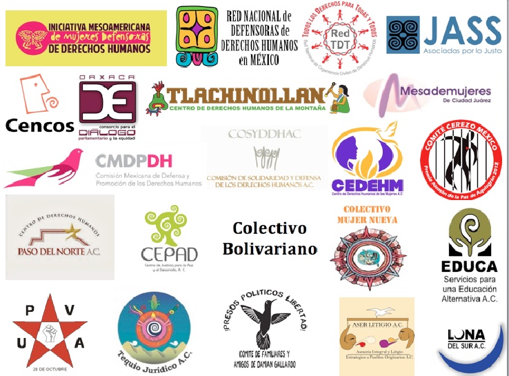 Atentamente, Asesoría Integral y Litigio Estratégico a Pueblos Originarios Asociadas por lo Justo (JASS) Centro de Derechos Humanos de la Montaña Tlachinollan Centro de Derechos Humanos de las Mujeres en Chihuahua (CEDEHM) Centro de Derechos Humanos Paso del Norte, Centro de Justicia para la Paz y el Desarrollo, AC (CEPAD) Centro Nacional de Comunicación Social AC (CENCOS) Colectivo Bolivariano, Colectivo Mujer Nueva Comisión de Solidaridad y Defensa de los Derechos Humanos A.C. (COSYDDHAC) Comisión Mexicana de Defensa y Promoción de los Derechos Humanos, A.C. (CMDPDH), Comité Cerezo México Comité de Familiares y Amigos de Damián Gallardo Consorcio para el Diálogo Parlamentario y la Equidad Oaxaca (Consorcio Oaxaca) Educa Servicios y Asesoría para la Paz (EDUCA) Iniciativa de Mujeres Defensoras de Derechos Humanos (IM-Defensoras) Luna del Sur Red Mesa de Mujeres en Ciudad Juárez Tequio Jurídico A.C. Unión Popular de Vendedores Ambulantes (UPVA) “28 de Octubre” (UPVA) Red Nacional de Organismos Civiles de Derechos Humanos “Todos los Derechos para Todas y Todos” (REDTDT) conformada por 79 organizaciones en 21 estados de la República mexicana): Agenda LGBT (Estado de México); Alianza Sierra Madre, A.C. (Chihuahua); Asistencia Legal por los Derechos Humanos, A.C. (AsiLegal) (Distrito Federal); Asociación Jalisciense de Apoyo a los Grupos Indígenas, A.C. (AJAGI) (Guadalajara, Jal.); Bowerasa, A.C. “Haciendo Camino” (Chihuahua, Chih.); Casa del Migrante Saltillo (Saltillo, Coah.); Católicas por el Derecho a Decidir, A.C. (Distrito Federal); Centro “Fray Julián Garcés” Derechos Humanos y Desarrollo Local, A. C. (Tlaxcala, Tlax.); Centro de Apoyo al Trabajador, A.C. (CAT) (Distrito Federal); Centro de Derechos Humanos “Don Sergio” (Jiutepec, Mor.); Centro de Derechos Humanos “Fray Bartolomé de Las Casas”, A. C. (San Cristóbal de Las Casas, Chis); Centro de Derechos Humanos “Fray Francisco de Vitoria O.P.”, A. C. (Distrito Federal); Centro de Derechos Humanos “Fray Matías de Córdova”, A.C. (Tapachula, Chis.); Centro de Derechos Humanos “Juan Gerardi”, A. C. (Torreón, Coah.); Centro de Derechos Humanos “Miguel Agustín Pro Juárez”, A. C. (Distrito Federal); Centro de Derechos Humanos de la Montaña, Tlachinollan, A. C. (Tlapa, Gro.); Centro de Derechos Humanos de las Mujeres (Chihuahua); Centro de Derechos Humanos de los Pueblos del Sur de Veracruz “Bety Cariño”, A.C. (Tatahuicapan de Juárez, Ver.); Centro de Derechos Humanos Digna Ochoa, A.C (Tonalá, Chis.); Centro de Derechos Humanos Paso del Norte (Cd. Juárez, Chih.); Centro de Derechos Humanos Toaltepeyolo (Orizaba, Veracruz); Centro de Derechos Humanos Victoria Diez, A.C. (León, Gto.); Centro de Derechos Humanos Zeferino Ladrillero (CDHZL) (Estado de México); Centro de Derechos Indígenas “Flor y Canto”, A. C. (Oaxaca, Oax.); Centro de Derechos Indígenas A. C. (Bachajón, Chis.); Centro de Investigación y Capacitación Propuesta Cívica A. C. (Propuesta Cívica) (Distrito Federal); Centro de Justicia para la Paz y el Desarrollo, A. C. (CEPAD) (Guadalajara, Jal.); Centro de los Derechos del Migrante (Distrito Federal); Centro de Reflexión y Acción Laboral (CEREAL-DF) (Distrito Federal); Centro de Reflexión y Acción Laboral (CEREAL-Guadalajara) (Guadalajara, Jal.); Centro Diocesano para los Derechos Humanos “Fray Juan de Larios”, A.C. (Saltillo, Coah.); Centro Juvenil Generando Dignidad (Comalcalco, Tabasco); Centro Mexicano de Derecho Ambiental (CEMDA) (Distrito Federal); Centro Mujeres (La Paz, BCS.); Centro Regional de Defensa de DDHH José María Morelos y Pavón, A.C. (Chilapa, Gro.); Centro Regional de Derechos Humanos “Bartolomé Carrasco”, A.C. (BARCA) (Oaxaca, Oax.); Ciencia Social Alternativa, A.C. KOOKAY (Mérida, Yuc.); Ciudadanía Lagunera por los Derechos Humanos, A.C. (CILADHAC) (Torreón, Coah.); Colectivo contra la Tortura y la Impunidad (CCTI) (Distrito Federal); Colectivo Educación para la Paz y los Derechos Humanos, A.C. (CEPAZDH) (San Cristóbal de Las Casas, Chis.); Comisión de Derechos Humanos y Laborales del Valle de Tehuacán, A.C. (Tehuacán, Pue.); Comisión de Solidaridad y Defensa de los Derechos Humanos, A.C. (COSYDDHAC) (Chihuahua, Chih.); Comisión Independiente de Derechos Humanos de Morelos, A. C. (CIDHMOR) (Cuernavaca, Mor.); Comisión Regional de Derechos Humanos “Mahatma Gandhi”, A. C. (Tuxtepec, Oax.); Comité Cerezo (Distrito Federal); Comité Cristiano de Solidaridad Monseñor Romero (Distrito Federal); Comité de Defensa de las Libertades Indígenas (Palenque, Chis.); Comité de Defensa Integral de Derechos Humanos Gobixha A.C. (CODIGODH) (Oaxaca, Oax.); Comité de Derechos Humanos “Fr. Pedro Lorenzo de la Nada”, A. C. (Ocosingo, Chis.); Comité de Derechos Humanos “Sierra Norte de Veracruz”, A. C. (Huayacocotla, Ver.); Comité de Derechos Humanos Ajusco (Distrito Federal); Comité de Derechos Humanos de Colima, A. C. (Colima, Col.); Comité de Derechos Humanos de Comalcalco, A. C. (CODEHUCO) (Comalcalco, Tab); Comité de Derechos Humanos de Tabasco, A. C. (CODEHUTAB) (Villahermosa, Tab); Comité de Derechos Humanos y Orientación Miguel Hidalgo, A. C. (Dolores Hidalgo, Gto.); Comité de Familiares de Detenidos Desaparecidos “Hasta Encontrarlos”(Distrito Federal); Comité Sergio Méndez Arceo Pro Derechos Humanos de Tulancingo, Hgo A.C. (Tulancingo, Hgo.); Consultoría Técnica Comunitaria AC (CONTEC) (Chihuahua); El Caracol, A.C (Distrito Federal); Estancia del Migrante González y Martínez, A.C. (Querétaro, Qro.); Frente Cívico Sinaloense. Secretaría de Derechos Humanos (Culiacán, Sin.); Fundación para la Justicia y el Estado Democrático de Derecho (Distrito Federal); Indignación, A. C. Promoción y Defensa de los Derechos Humanos (Mérida, Yuc.); Instituto de Derechos Humanos Ignacio Ellacuria, S.J Universidad Iberoamericana- Puebla (Puebla, Pue.); Instituto Guerrerense de Derecho
