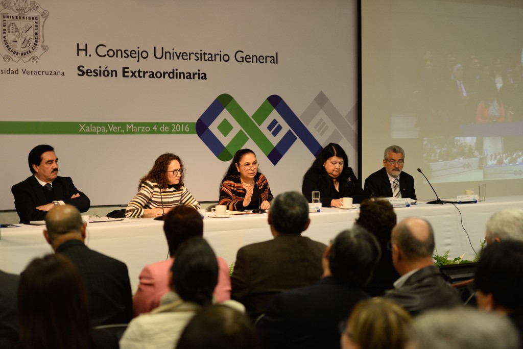 En sesión, el Consejo Universitario General de la Universidad Veracruzana acordó además, rechazar la modificación al artículo 98 de la Ley del Instituto de Pensiones del Estado y la reducción del presupuesto 2016, así como exigir al gobierno estatal el pago de los pendientes financieros.