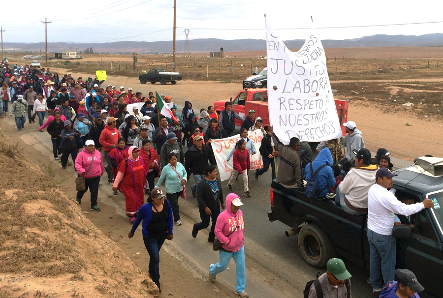 Sin mejoras en condiciones laborales y sin servicios de salud/Jornaleras en una marcha en San Quintín en abril de 2015 | CIMACFoto: Angélica Jocelyn Soto Espinosa Por Angélica Jocelyn Soto Espinosa Cimacnoticias CIUDAD DE MEXICO, D.F. 17 de marzo del 2016.- Sin ningún acuerdo plenamente cumplido de parte del gobierno federal y el local, las jornaleras del Valle de San Quintín, en el estado de Baja California (BC), siguen en condiciones de trabajo precarias y abusivas a un año de haber exigido con megamarchas y paros laborales mejoras salariales, e infraestructura médica y de cuidados. Con el movimiento laboral iniciado el 17 de marzo de 2015 en San Quintín, las mujeres jornaleras no sólo arroparon las exigencias del gremio por aumento salarial y seguridad social, sino que además se posicionaron con sus propias demandas. Su salario de menos de 120 pesos diarios, las jornadas extenuantes y la ausencia de protección social derivaron en un paro laboral que duró semanas y que conllevó también la toma de la Carretera Transpeninsular durante varias horas. Se gestó así un movimiento que fue un reflejo de lo que ocurre con las trabajadoras agrícolas de todo el país, cuya población y condiciones de vida son inciertas por la ausencia de un censo oficial. Las exigencias femeninas se centraron desde el inicio en cuatro puntos: creación de un hospital de especialidades de tercer nivel para mujeres embarazadas o con enfermedades provocadas por los riesgos de su trabajo; guarderías de calidad para las jornaleras; medidas contra el acoso sexual; e inspecciones para asegurar que los empleadores cumplan las licencias de maternidad y no cometan abusos contra ellas. Las jornaleras han sido protagonistas de estas movilizaciones que incluso a mediados de 2015 fueron reprimidas, al grado que las autoridades de BC entraron a las comunidades a golpear a activistas, y permitieron una ola de despidos en los campos agrícolas. Según el balance de activistas de la región consultadas por Cimacnoticias, a un año de las movilizaciones en San Quintín, los avances son raquíticos para las mujeres. Nada de hospital En noviembre de 2015 inició en San Quintín la ampliación de infraestructura del Hospital Rural Prospera Número 69 del Instituto Mexicano del Seguro Social (IMSS), ubicado en Vicente Guerrero (principal comunidad de migrantes de la etnia triqui), el mismo que en enero de 2015 recibió una recomendación de la Comisión Nacional de Derechos Humanos por violencia obstétrica contra una mujer indígena. Las modificaciones al nosocomio están pensadas para concluir en el primer semestre de 2016 y, de acuerdo con información del IMSS, requiere una inversión de 45 millones de pesos para 10 camas más, la remodelación del área de urgencias, quirófanos y hospitalización, así como la creación de 10 consultorios de especialidades, pero ninguna vinculada con la salud reproductiva de las mujeres. La indígena y activista Lucila Hernández García, que viajó hasta el Senado en marzo de 2015 para exigir mejor atención médica para las jornaleras, dijo que la ampliación del Hospital Rural no representa lo que en origen querían las trabajadoras del campo: contar con centros médicos de la más alta calidad y con equipo y suficiente personal especializado para evitar muertes de mujeres embarazadas, quienes tienen que viajar hasta por cuatro horas a Ensenada (a 188 kilómetros de San Quintín), para recibir atención de tercer nivel. Si bien el proyecto de ampliación está planeado en cuatro fases, hasta ahora los resultados no se traducen en atenciones especializadas contra las muertes maternas, sino únicamente en la construcción apenas de tan sólo seis metros cuadrados de piso y pared. Guarderías, ni en el papel En peores términos está el compromiso de crear guarderías para las trabajadoras agrícolas de la región, aseguró Fidel Sánchez Gabriel, vocero de la Alianza de Organizaciones Nacional, Estatal y Municipal por la Justicia Social. Y es que hasta abril de 2015 no había más que estancias infantiles improvisadas con láminas sobre llantas de colores, y una guardería del IMSS en la que estaba inscrito sólo el hijo de una jornalera, como lo constató Cimacnoticias al visitar San Quintín. Como se observa en los tres informes de avances que realizó la Comisión de Derechos Humanos del Senado, que se encargó de revisar la situación de las y los jornaleros de San Quintín, mientras más avanzaban los encuentros entre las autoridades y el movimiento jornalero, la propuesta de crear guarderías se iba diluyendo hasta el punto de no quedar escrita en ninguna minuta. En resumen, un año después no hay ni tres piedras colocadas en el piso que avizoren la construcción de una estancia de calidad para cuidar a las y los hijos de las jornaleras mientras ellas trabajan, ya que permanecen en las calles, al cuidado de otras mujeres sin paga, o detrás de las rejas sus casas. Fideicomiso que nunca se creó Destaca que para la creación del hospital de especialidades y las guarderías, así como de otras mejoras de infraestructura, el subsecretario de Gobernación, Luis Enrique Miranda, estipuló la creación de un fideicomiso al que aportarían recursos tanto el gobierno federal como del estado, y quedaría a cargo de las y los jornaleros. Los detalles de ese fondo se discutieron en la mesa de diálogo del 24 de abril de 2015, en un restaurante del Valle de San Quintín, al que acudió, además del subsecretario de Gobernación, el gobernador de BC, Francisco Vega, e integrantes de la Alianza de Organizaciones. Al respecto, Sánchez Gabriel precisó que en reuniones sucesivas se acordó que el fideicomiso también contendría recursos para el desarrollo de programas sociales focalizados a las necesidades de las mujeres y sus hijas e hijos. Las y los jornaleros podrían participar en la administración del fideicomiso siempre y cuando, advirtieron las autoridades, el movimiento lograr
