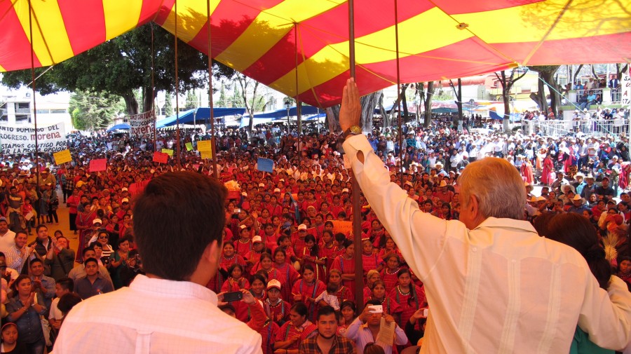 El dirigente nacional de Morena, Andrés Manuel López Obrador, conmemora el 78 aniversario de la Expropiación Petrolera en Oaxaca, y anuncia que al triunfo de Morena, se hará una consulta ciudadana para cancelar la Reforma Energética. SANTO DOMINGO TONALA, Oax. 18 de marzo del 2016.- El dirigente nacional de Morena, Andrés Manuel López Obrador, manifestó a la nación “que en el 2018, vamos a recuperar para beneficio de los mexicanos la industria eléctrica y el petróleo”. Ante los habitantes de las culturas triqui y mixteca, el político de izquierda informó que hace casi dos años, el traidor a la patria Enrique Peña Nieto reformó los artículos 25, 27 y 28 de la Constitución para entregar a particulares nacionales y extranjeros la industria eléctrica nacional y el petróleo. “Por eso hacemos el compromiso en este día, que al triunfo de Morena en el 2018, vamos a cancelar esa mal llamada Reforma Energética”, insistió, al decir que desde luego no será una imposición, “pero no se puede responder a una imposición con otra imposición”. Indicó que habla que se va a cancelar la Reforma Energética, porque confía en que el pueblo de México así lo va a decidir y para ello se hará una consulta ciudadana en el 2018 para preguntar al pueblo y decida ¿Si quiere que continúe la Reforma Energética o que se cancele y se recuperen los bienes del pueblo y de la nación que han sido entregados a particulares? Preguntó a los ciudadanos de Juxtlahuaca que si se realiza la consulta ¿Votarían porque siga la Reforma Energética o por qué haya un cambio? Los habitantes respondieron que haya un cambio y la mayoría levantó la mano para que se cancele la reforma, y por ello sabe que se va a quitar la Reforma Energética. Aseguró que el partido político Morena recuerda este 18 de marzo, porque este día se conmemora el 78 aniversario de la Expropiación Petrolera, fecha donde el general Lázaro Cárdenas del Río recuperó el petróleo que estaba en manos de extranjeros y lo puso en beneficio al pueblo de México. Recalcó que Morena tiene que mantener en la memoria a los padres de la patria: como Miguel Hidalgo, José María Morelos y Pavón, Benito Juárez García, los hermanos Flores Magón, Francisco Villa, Emiliano Zapata y al general Cárdenas del Río quien fue un presidente popular y patriota. “Estar en Juaxtlahuaca este día es recordar a ese gran presidente, que después de su mandato, todavía, se vino a trabajar a esta región, tenía una casa en Tonalá y visitaba todas las comunidades indígenas pobres y las ayudaba”, rememoró al pedir que se recuerde con cariño a tres presidentes de México: el oaxaqueño Benito Juárez, el apóstol por la democracia Francisco I. Madero, y el general Lázaro Cárdenas. Nuevo spot de Morena, ante resolución del INE Por otra parte, López Obrador adelantó que hará otro spot de Morena ante la resolución de este día de la Comisión de Quejas y Denuncias del Instituto Nacional Electoral (INE) de no subir el mensaje de Morena, donde se informa, otra vez del avión de siete mil 500 millones de pesos de Enrique Peña Nieto, al calificarlo como promoción personalizada. El reciente mensaje de Morena, que no será dado a conocer en los tiempos oficiales de radio y televisión, es: “No solo es la ostentación, el derroche, es el mal ejemplo. Apenas habían comprado el avión de siete mil 500 millones (de pesos) que no lo tiene ni Obama y ya habían comprado otro para el secretario de la Defensa y otro más para el procurador, un avión de lujo de 80 millones de dólares, mientras al pueblo solo le entregan migajas, despensas, frijol con gorgojo y eso cuando necesitan los votos, Morena es la esperanza de México”. Indicó que la mafia del poder prohíbe los spots de Morena, porque les afectan mucho. Previamente, dijo que como no le gustó a Enrique Peña el spot de Morena, en el que explica sobre que el mandatario de México se compró un avión de lujo de siete mil 500 millones de pesos y por instrucciones del secretario de Gobernación, Miguel Ángel Osorio Chong, los magistrados del Tribunal Electoral del Poder Judicial de la Federación bajaron el spot de radio y televisión. Explicó que todos los partidos políticos tienen derecho a un tiempo oficial en radio y televisión, claro que Morena tiene muy poco tiempo y se tiene que hablar muy claro, además, el mensaje tarda 30 segundos, no se puede pasar y como no puede entrar así, tiene que hablar 28 o 26 segundos, aparte la entrada y la salida. El mensaje de Morena, dio a conocer, sale esporádicamente, es decir, sale como el cometa, de vez en cuando, pero cuando sale es directo. Por uno de Morena, salen 10 del PRI y 10 del PAN.