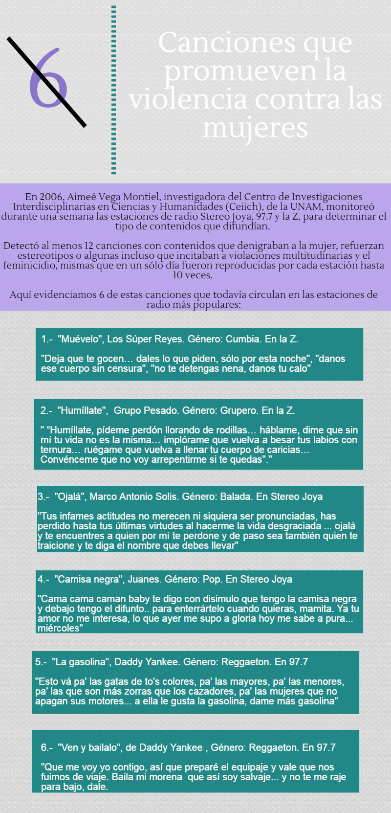 © César Martínez López Video muestra incapacidad estructural para erradicar sexismo/CIMACFoto: César Martínez López Por Angélica Jocelyn Soto Espinosa Cimacnoticias CIUDAD DE MEXICO, D.F. 31 de marzo del 2016.- El videoclip del cantante grupero Gerardo Ortiz, que a decir de activistas por los derechos de las mujeres promueve la violencia feminicida, es una muestra de que México incumple acuerdos internacionales como la Plataforma de Acción de Beijing y la Convención de Belém Do Pará, e incluso leyes nacionales que sancionan que los medios de comunicación inciten a la violencia de género. Tales contenidos son incongruentes con el Capítulo J de la Plataforma de Acción de Beijing, instrumento vinculante para México desde 1995 y emanado de la IV Conferencia Mundial sobre la Mujer realizada ese año en China. El Capítulo J establece que los gobiernos deben alentar a los medios de comunicación a que se abstengan de presentar a la mujer como un ser inferior, y de explotarla como objeto sexual y bien de consumo. También llama a los Estados a adoptar medidas efectivas que incluyan normas legislativas pertinentes contra la pornografía y la proyección de programas en los que se muestren escenas de violencia contra las mujeres y menores de edad. Igualmente, el video atenta contra lo señalado por la Convención Interamericana para Prevenir, Sancionar y Erradicar la Violencia contra la Mujer (aprobada en 1994 en Brasil y mejor conocida como Belém Do Pará), y por la Convención sobre la Eliminación de Todas las Formas de Discriminación Contra la Mujer (CEDAW, por sus siglas en inglés) aprobada desde 1979. La Convención Belem Do Pará establece el derecho de toda mujer a una vida libre de violencia que incluye, entre otros, a ser valorada y educada libre de patrones estereotipados de comportamiento y prácticas sociales y culturales basadas en conceptos de inferioridad o subordinación. Por su parte, la Cedaw insta a los Estados partes a condenar la discriminación contra la mujer en todas sus formas y a seguir, por todos los medios apropiados y sin dilaciones, una política contra la discriminación a través de adoptar medidas legislativas y de otro carácter, con las sanciones correspondientes. 31seg1 Reacción tardía del gobierno Luego de que el video estuvo al menos dos meses en circulación, las autoridades federales se pronunciaron tardíamente, pues ya desde antes grupos feministas, como el Comité de América Latina y el Caribe para la Defensa de los Derechos Humanos de las Mujeres (Cladem) en Jalisco, lo repudiaron en redes sociales por considerar que su contenido promueve la violencia de género. Las feministas circularon en días pasados una petición en la plataforma virtual Change.org –con más de cinco mil firmas de apoyo–, para exigir que el video fuera retirado de las redes sociales. También emitieron misivas a Jesús Pablo Lemus Navarro, alcalde de Zapopan, Jalisco (tercera entidad del país en declarar la Alerta de Violencia de Género), para que investigue la participación en el video de patrullas de la policía municipal. Apenas este lunes 28 de marzo, el secretario de Gobernación, Miguel Ángel Osorio Chong, reconoció en un comunicado que las mujeres suelen ser retratadas en campañas, programas televisivos, videos musicales, anuncios en prensa escrita, y otros materiales de comunicación, bajo diversos estereotipos que fomentan la violencia en su contra. El funcionario expresó su rechazo al videoclip de Gerardo Ortiz y “exhortó” a los medios de comunicación, a las casas productoras, a las agencias de publicidad, a las y los usuarios de redes sociales, a las y los periodistas, y a la sociedad a evitar difundir contenidos que banalizan y promueven la violencia. También dijo que instruyó a la Comisión Nacional para Prevenir y Erradicar la Violencia contra las Mujeres (Conavim) para que impulse medidas contra el uso de estereotipos en la comunicación, e implemente, junto con la subsecretaría de Normatividad de Medios de la Segob, un “programa de sensibilización” dirigido a quienes generan contenidos en medios. Asimismo, de manera tardía, la Conavim difundió en redes sociales un cartel con una imagen del video de Ortiz y un fragmento de la canción en letras cursivas. Hasta arriba de la imagen un pequeño ícono señala: “video sexista”. Para no quedarse atrás, este lunes el Instituto Nacional de las Mujeres (Inmujeres) expresó “su más enérgica condena” al video, ya que –acotó– hace una clara apología del delito, justifica el homicidio y el feminicidio en medio de un contexto de violencia exacerbada contra las mujeres, que se expresa en la muerte de una mexicana cada tres horas. 31seg2 Pronunciamientos a medias Aimée Vega Montiel, académica del Centro de Investigaciones Interdisciplinarias en Ciencias y Humanidades (CeIICH) de la UNAM, dijo a esta agencia que el video no debe tomarse como un hecho coyuntural, sino que demuestra la problemática estructural en los medios de comunicación mexicanos que a diario hacen apología de la violencia contra las mujeres. Para la investigadora, quien en 2006 monitoreó emisoras de radio y TV e impresos del país, señaló que el videoclip de Gerardo Ortiz confirma lo que concluyó entonces, y es que la violencia de género constituye el hilo narrativo del discurso mediático. Vega relató que la industria musical es un poderoso vehículo para la promoción de la violencia contra las mujeres, ya que todos los géneros musicales promueven contenidos sexistas que atentan contra su dignidad, y las visualizan como una amenaza para el patriarcado. La también integrante de la Alianza Global de Medios de Comunicación y Género, que nació en 2013 con el propósito de promover la igualdad de género y eliminar la discriminación, llamó a la Segob a que las acciones que promueva no sean coyunturales, sino que vayan en el sentido más amplio de la responsabilidad de los medios y