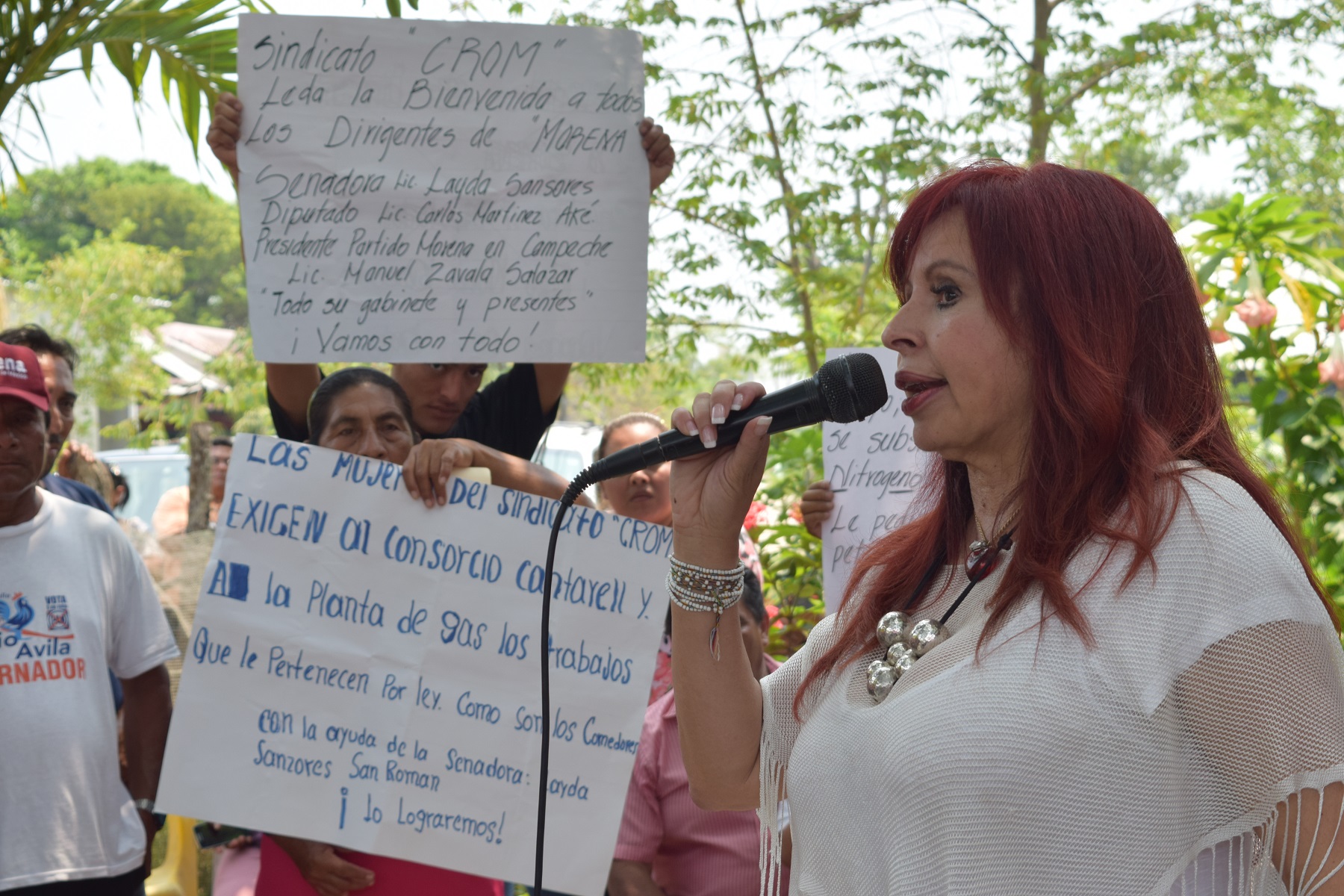 Por Ronny Aguilar SAN ANTONIO CARDENAS, CARMEN, Cam. 15 de abril del 2016.- La senadora Layda Sansores San Román se reunió con trabajadores pertenecientes al sindicato de la CROM y anunció que buscará a los otros tres senadores de Campeche, para que se comprometan a dar solución a la problemática de la Península de Atasta, ya que ellos son parte de quienes aprobaron la Reforma Energética, que tiene sumidos a los carmelitas en la desgracia. A las 11 de la mañana, la legisladora federal encabezó una reunión con agremiados del sindicato de la CROM en este lugar, quienes desde hace varias semanas, han estado exigiendo que se les emplee en la Planta de Nitrógeno –propiedad del grupo alemán Linde-, misma que afirman tenía un compromiso con ellos para darles trabajo. Los atastecos dieron a conocer las condiciones en las que viven, sin posibilidad de empleo digno y por lo tanto, en la escasez económica, con todos los problemas sociales que eso significa, y señalaron que Pemex no cumplió los compromisos de proporcionar luz eléctrica como lo tenía pactado, cuando se autorizó la construcción de la Planta de Nitrógeno. Sansores San Román manifestó que Atasta tuvo solamente las migajas que quisieron darles, por los grandes beneficios del petróleo que ya se fue, mientras que los recursos se quedaron con los gobiernos corruptos, dineros por los cuales no dieron ninguna explicación, porque era la caja chica de los gobernantes. “El petróleo, que dio tanto a los mexicanos, tiene una deuda muy grande con Campeche, pero principalmente lo tiene con la Península de Atasta, no se les ha hecho justicia y esto tiene que venir más temprano que tarde”, expresó. Afirmó que Andrés Manuel López Obrador lo auguró y que lo estamos viendo, una visión voraz de Peña Nieto, que no tiene más que una visión de Zacazonapan, era secretario particular del tío que lo hace diputado, como gobernador le manejaba la lana, le ponen novia artista y lo ponen en la presidencia, sin tener el pulso del país, en contraste, López Obrador conoce municipio por municipio en tres vueltas al país. “Los campechanos pensaron que la bonanza venía y recuerdo a mis compañeros senadores hablando en tribuna y yo decía, pues de qué país hablan, decían que tendríamos que aprender a administrar la abundancia, que iba a sobrar el dinero, los empleos, nos iban a dar por metro cuadrado la renta petrolera y yo me reía en su cara y les decía que los estaban engañando, pero eso es lo que querían creer”, indicó.