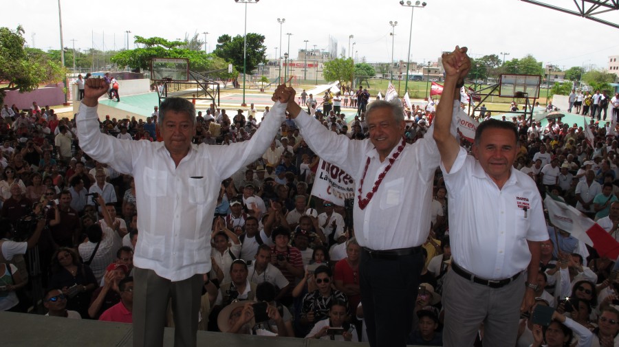 CANCUN, Q.Roo. 18 de abril del 2016.- El presidente del Comité Ejecutivo Nacional, Andrés Manuel López Obrador, manifestó que Morena está arriba en las encuestas a nivel nacional, como la que ayer publicó el periódico de circulación nacional Reforma, porque el pueblo de México le está dando la confianza al partido político. Manifestó que hay veces que las encuestas son cuchareadas, pero Reforma que es un diario conservador, se preocupa por la credibilidad, porque ni modo que esté del lado de Morena, todavía podrían decir que es La Jornada un medio que está a favor del partido político que encabeza. En otro tema, el político de izquierda informó que el diputado federal de Panal, José Bernardo Quezada Salas, compró 11 departamentos de lujo en Miami, de ocho millones de dólares, durante el tiempo en que la lideresa magisterial Elba Esther Gordillo y el entonces candidato del PAN, Felipe Calderón Hinojosa, fraguaron robarse la Presidencia de la República en el 2006. “Calderón no ganó la Presidencia de la República, nos robaron la Presidencia de la República”, sostuvo, al decir que el panista en pago, entregó la subsecretaria de Educación Pública para el yerno de Elba Esther, así como la Lotería Nacional y el ISSSTE para el que ahora es el candidato del PAN al gobierno de Veracruz, Miguel Ángel Yunes Linares. Recordó que en el 2012, Enrique Peña Nieto compró cinco millones de votos con dinero de procedencia ilícita, “pero la tercera es la vencida y aquí estamos. Se equivocaron los de la mafia del poder, pensando que yo no iba a resistir, que después de estos fraudes me iba a hacer a un lado, después del 2006, pensaron que ya no representábamos nada, en esto es muy importante la perseverancia, desde luego cuando se lucha por una causa justa, y en el 2012, lo mismo”. Al conceder una entrevista, en vivo en la cabina del noticiero “Informativo Turquesa”, en la frecuencia 105.1 FM de Cancún, Quintana Roo, el presidente del Comité Ejecutivo Nacional de Morena, aseguró que se retirará cuando lo decida el pueblo y no la mafia del poder, porque si no hubiese luchado después del 2006, no habría nada, ya que los partidos con todo respeto están al servicio de la mafia del poder que es integrado con 100 políticos corruptos y traficantes de influencias. Indicó que los potentados controlan los medios de información que no dan a conocer por ejemplo la compra del avión de siete mil 500 millones de pesos o de la casa blanca de Enrique Peña Nieto de 200 millones de pesos, pero también compraron a 9 de los 10 partidos políticos a nivel nacional, no les importa si gana el PRI o el PAN, porque pertenecen al mismo grupo. Expuso que la mafia del poder está integrada por el jefe de Jefes Carlos Salinas de Gortari, Manlio Fabio Beltrones que ayer estuvo en Cancún, que quien sabe cuántas carteras se perdieron durante la visita del priista en el municipio, el PAN es lo mismo, es decir, la misma gata, pero revolcada, y denunció que los candidatos del Verde reparten despensas, frijol con gorgojo para apoderarse de Cancún y Quintana Roo, está detrás el “Niño Verde”. Contubernio del PRI, el PAN y el PRD en Quintana Roo A la pregunta de si hay un contubernio entre el PRI, el PAN y el PRD, López Obrador respondió que sí, y negó que el candidato de la alianza PAN-PRD, Carlos Joaquín González, sea la opción para los ciudadanos de Quintana Roo. Explicó que la única diferencia que puede haber entre el candidato del PRI al gobierno, Mauricio Góngora, y el candidato del PAN, Carlos Joaquín González, es que el priista es un ratero y el panista es un ladrón. Recordó a quienes asistieron al cumpleaños del panista Diego Fernández de Cevallos: Carlos Salinas, Raúl Salinas, Carlos Slim, Felipe Calderón, Carlos Navarrete, y otros más, estaba la reunión para hacer una redada. Señaló que muchos ciudadanos creen que ante la corrupción del PRI, el PAN es la opción, pero no es así, porque son iguales de corruptos y detalló que el panista Carlos Joaquín es hermano de Pedro Joaquín Coldwell que está de achichincle de Salinas de Gortari y promovió la entrega de la industria eléctrica, así como la privatización de petróleo, es corrupto. Manifestó que la gente no tiene suficiente información respecto al candidato del PRD-PAN, y advirtió a las personas que si votan por el PRI o por el PAN, porque eso es ser masoquista, y recomendó al candidato de Morena en Quintana Roo, José Luis Pech es gente honesta, lo demás es puro cuento. Pidió a los ciudadanos que no esperen al 2018 para apoyar a Morena, que ya en las elecciones del cinco de junio participen para cambiar al estado. Aclaró que la conductora Mara Lezama decidió no ser candidata de Morena, porque le preocupaba de qué iba a vivir, ya que no vive de sus rentas como otros, y además la hostigaron, la amenazaron. Morena está porque se atienda el centro turístico, que es Cancún En otro tema, el ex candidato presidencial manifestó que Morena quiere que se atienda el centro turístico, que es Cancún, que siga siendo productivo en generación de empleos, al mismo tiempo se mejoren los servicios de colonias que no cuenta con el agua, ni drenaje, porque se tiene que cuidar la fuente de ingresos. “Nosotros lo que planteamos que siga habiendo desarrollo con empleo y al mismo tiempo justicia, respeto absoluto a la naturaleza, es la que le da de comer a Cancún, porque si no se respeta el medio ambiente, no habrá lugar para visitar y promover el turismo”, expresó. Dijo que los políticos corruptos se han dedicado a destruir la ecología, la convivencia pacífica, no creando condiciones favorables para el bienestar y comentó que Quintana Roo se ha convertido en un botín, pero tiene un pueblo extraordinario y trabajador, muchos mexicanos y extranjeros han venido a buscar una mejor vida en el estado y el pueblo de la entidad ha sido solidario ante personas de otros lugares. Es u