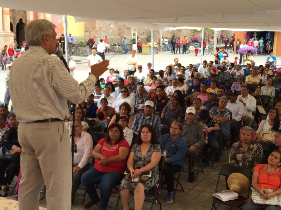 El dirigente nacional de Morena señala que la legalización de la marihuana es una cortina del humo, porque Peña debería de combatir la corrupción que es el problema principal de México. TEPEZALA, Ags. 22 de abril del 2016.- Andrés Manuel López Obrador consideró que en México hay muchas personas disfrazadas de Donald Trump, como son el priista Carlos Salinas de Gortari y los panistas Diego Fernández de Cevallos y Vicente Fox, son lo mismo, nada más que hipócritas, solo que Trump “es un deslenguado”. Previamente, el presidente del Comité Ejecutivo Nacional de Morena expresó su desacuerdo con la política discriminatoria que lleva a cabo el precandidato republicano a la Presidencia de los Estados Unidos, pero también en eso hay bastante hipocresía. Al preguntar los reporteros su opinión sobre si el gobierno mexicano ha sido tibio en el caso de Donald Trump, y no ha actuado, López Obrador respondió que Peña Nieto no tiene autoridad moral y recordó la declaración de Hillary Clinton que si ella gobernará a México, no descansaría hasta encontrar a los jóvenes desaparecidos de Ayotzinapa. “Y se quedan todos callados, porque Peña es cómplice, sabe lo que sucedió y la señora Clinton abusa, porque sabe también qué sucedió, ella tiene información y está humillando a un gobernante extranjero, eso no se debe de hacer”, expresó. Manifestó que hay que ser respetuoso de la soberanía de los países, de las naciones, es un acto de mucha soberbia el estar opinando sobre la situación de otro país, aunque se sabe que en México domina la mafia del poder y que Peña además de inepto, corrupto y cómplice de muchas cosas, pero este es nuestro asunto, nadie debe meterse. “Nosotros no nos metemos en la vida de ellos nos deben de respetar. Yo por eso no opino de lo que sucede afuera, porque no quiero que se metan en decisiones que solo le corresponden a los mexicanos”, comentó. Al preguntar los reporteros su opinión sobre la legalización de la marihuana en México, el político de izquierda respondió que es una cortina del humo, porque Enrique Peña Nieto, en vez de combatir la corrupción, está dedicado a eso, porque él no puede combatir la corrupción, ya que es parte de la corrupción, es muy corrupto Peña. “Entonces para entretener, para desviar la atención, están hablando sobre la marihuana, como si eso fuese el principal problema de México, el principal problema de México es la corrupción, y sobre eso no se dice nada, todo se oculta, acaban de dar a conocer la lista de los que lavan dinero en el extranjero, hay priistas, panistas y no se dicen nada, pero si están dale, dale y dale con lo de la marihuana”, indicó. Seguirá apoyo a los maestros y ahora siguen los de Zacatecas Sobre si continuará respaldando Morena a los maestros, porque ayer dijo que aunque se enojen, López Obrador mencionó que sí se molestan mucho los de la mafia del poder por el apoyo a los maestros, pero son los únicos que apoyan a los profesores, porque además es una injusticia. Explicó que mucha gente no sabe que las llamadas reformas estructurales: la laboral, la fiscal, la energética y la educativa, forman parte de una agenda que se impone desde hace 20 años a todos los países del mundo desde los centros financieros internacionales. El gobierno de México, agregó, ya impuso las reformas estructurales, que son impuestas desde el extranjero y explicó que la reforma educativa es una reforma laboral, coercitiva y en contra de la educación pública. Como es la llamada política económica neoliberal, todo mundo se queda callado”. Indicó que los habitantes de Aguascalientes conocen a Otto Granados es subsecretario de Planeación de la Secretaría de Educación Pública, estuvo en Comunicación Social en el sexenio del priista Carlos Salinas, “estamos realmente en manos de una mafia, los que dominan México es una mafia del poder”. Al preguntar los reporteros que si es correcto que los maestros radicalicen sus protestas, como en Chiapas, que fueron detenidos 18 maestros y después liberados, Andrés Manuel planteó que lo primero que se tiene que buscar es un acuerdo, un arreglo, porque no se puede imponer una reforma educativa, porque si fuese una reforma educativa cómo se aplicaría sin los maestros, quién va a aplicarla, si no hay acuerdo con los maestros. “Se requiere llegar a un acuerdo para que haya una auténtica reforma educativa”, insistió al decir que le echan montón a los maestros, sobre todo los dueños, los camajanes, los machuchones de los medios de comunicación, que tienen acuerdo o forman parte de la mafia del poder, quienes tienen una campaña de desprestigio en contra del magisterio para satanizarlo, una mentira que se repite muchas veces llega a convertirse en una verdad. Recordó que ayer que firmó Morena el acuerdo con los maestros en Durango, decía que se iban a enojar los de la mafia del poder y anunció que pasado mañana firmará un acuerdo con los maestros de Zacatecas para llevar a cabo una verdadera reforma educativa, mejorar la calidad de la enseñanza. Afirmó que los potentados quieren destruir la educación pública, no es un asunto sindical, ellos quieren que la educación se ponga al mercado como si fuese una mercancía para que la adquiera el que la tenga para pagar la colegiatura, ese es el plan, por eso está esa reforma en la agenda de los organismos financieros internacionales, el propósito es la privatización de la educación. Recordó que cuando Carlos Salinas iba a entregar Teléfonos de México, se registró toda una campaña previa para convencer a la gente que Teléfonos de México daba un mal servicio y que era muy caro, luego privatización, es lo mismo ahora, es una campaña de desprestigio del magisterio, a la educación pública para seguir avanzando en la privatización. Puso otro ejemplo con la Reforma Energética, el gobierno de Peña dijo que iba a bajar el precio de la luz, de las gasol
