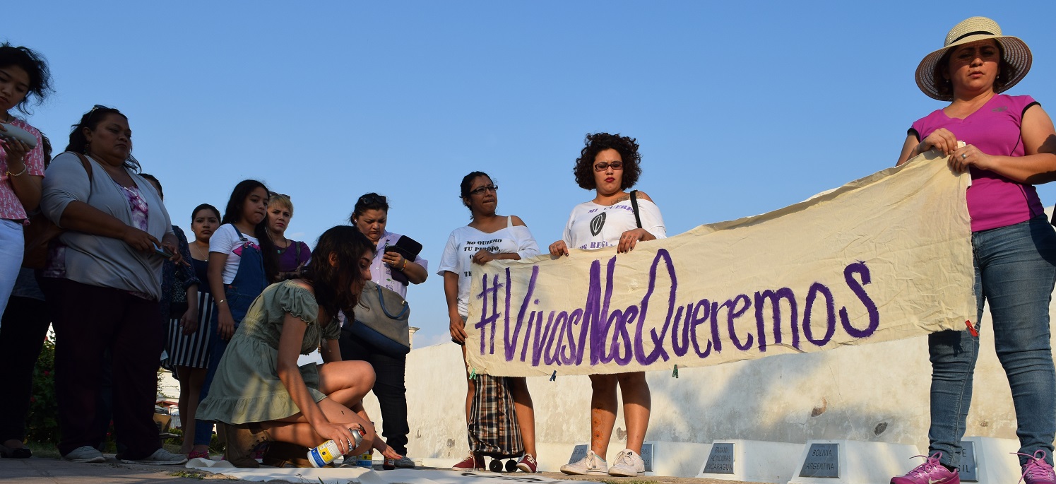Feministas campechanas, al grito de Vivas nos queremos, denuncian actos de ruindad e impune violencia de género cotidiana y consecutiva, institucional, familiar y social.