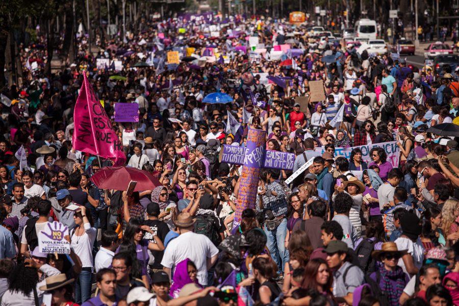 Todo un éxito, Primavera Violeta en contra de la impunidad/CIMACFoto: César Martínez López Por la Redacción Cimacnoticias CIUDAD DE MEXICO, D.F. 25 de abril del 2016.- La “Primavera Violeta” contra el acoso callejero y las violencias machistas inundó las calles en diversas ciudades de 27 estados del país, en lo que representó la primera gran marcha nacional –coordinada desde la sociedad civil– en demanda de justicia y fin de la impunidad, ante las violaciones sexuales, hostigamientos, asesinatos y desapariciones de mujeres en todo México. En Sinaloa, Veracruz, Jalisco, Chiapas, Querétaro, Oaxaca, Guanajuato, Zacatecas, Puebla y Colima –por mencionar sólo algunas entidades–, las voces de las mujeres se hicieron una sola en este eco que desde hace semanas se convocó de manera exitosa en redes sociales con la etiqueta de #24A. En el Estado de México –en dirección hacia la Ciudad de México–, desde lo hondo de la garganta salieron los gritos de aquellas mujeres que por primera vez salieron de los rincones para gritar “¡Ya basta!” frente a las agresiones disfrazadas de piropos, los tocamientos indeseados o los golpes que alguna vez han recibido, sin que a ninguna autoridad le importe o siquiera alguien lo condene. La impotencia ante la violencia de género o los asesinatos de mujeres, cuyos cuerpos son arrojados a las calles, cobró vida y color este domingo 24 de abril cuando las mexicanas en casi todo el país marcharon en lo que se bautizó como “Primavera Violeta”, un movimiento convocado por decenas de colectivos feministas que por primera vez hicieron escuchar su voz de forma masiva. A pleno rayo del sol matinal, las mexiquenses y las capitalinas se dieron cita en el Palacio Municipal de Ecatepec, uno de los 125 municipios del Edomex, entidad gobernada por el priista Eruviel Ávila y donde en 2014 fueron asesinadas 359 mujeres, según el estudio “La violencia feminicida en México. Aproximaciones y Tendencias 1985-2014”, presentado la semana pasada por la Secretaría de Gobernación (Segob).