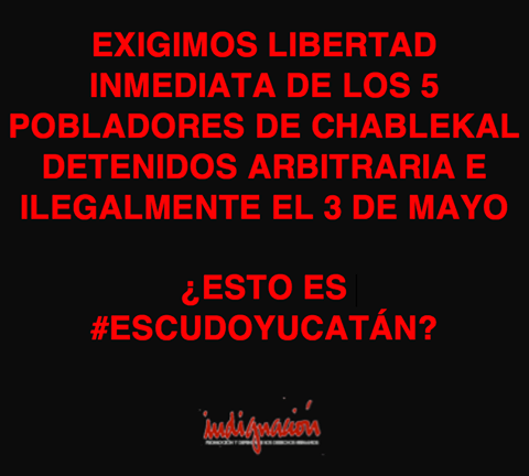 4cha El Equipo Indignación señala que quedan pendientes las responsabilidades políticas, administrativas y penales por las violaciones ocurridas. MERIDA, Yuc. 5 de mayo del 2016.- El Equipo Indignación informó que el día de hoy, aproximadamente a las 11 de la mañana, la Fiscalía General del Estado dejó en libertad a Pedro Antonio Euán Flores, Pedro Antonio Euán Santana, Javier Canché Novelo y Federico Euán Guardia, cuatro de los cinco detenidos en el brutal operativo policiaco efectuado por la Secretaría de Seguridad Pública del estado de Yucatán, el tres de mayo, en la comisaría meridana de Chablekal.  Previamente, el día de ayer fue liberado el menor de 15 años también detenido. “Como se recordará, el día tres de mayo, elementos de la Secretaría de Seguridad Pública (SSP) del estado realizaron un operativo en la comisaría de Chablekal, en donde existió un uso excesivo de la fuerza, allanamientos de la iglesia y de domicilios, golpes, amenazas e insultos generalizados contra pobladores de Chablekal y contra observadores de derechos humanos, detenciones ilegales y arbitrarias, robo de cámaras de video y de teléfonos celulares, con los cuales se hacía observación, dinero, bicicletas, tanques de gas y otros bienes de la población, obstaculización de la labor de defensores, provocación a la población y uso innecesario de gas lacrimógeno que causó severos daños a infantes de la comunidad de Chablekal y otras personas”, recordó. “Esto hechos, que constituyeron algunas de las violaciones a derechos humanos cometidas por la SSP de Yucatán en Chablekal, en un despliegue inusitado de agentes y de fuerza, como parte de un operativo que se realizó en el contexto de un desalojo que gente de la comunidad considera injusto y que agravia a un adulto mayor de 93 años, al cual salió a defender gran parte del pueblo”, indicó. La organización civil manifestó que durante el operativo, cinco pobladores de Chablekal, entre ellos un adolescente de 15 años, fueron detenidos ilegalmente por los elementos policíacos cuando allanaron un domicilio contiguo al desalojado, en donde se resguardaba parte de la población. Dos de ellos fueron golpeados y sujetos a tratos crueles, inhumanos y degradantes. También fueron detenidos dos integrantes del Equipo de Indignación que documentaban los hechos y uno más fue golpeado con una macana. “Después de casi seis horas, los detenidos de Chablekal fueron trasladados a la Fiscalía General del Estado, en donde por un lapso de casi seis horas más permanecieron, sin que se permitiera su entrevista con abogado o familiar alguno, incluso tuvo que presentarse un amparo por incomunicación ante la incertidumbre de su paradero. Hasta la medianoche dejaron a los familiares y abogado ingresar a verlos”, agregó. “Después de casi 48 horas de haber sido detenidos, el día de hoy, la Fiscalía determinó liberarlos. Sin embargo, en dicha liberación, no se permitió la presencia de un abogado de confianza y les hicieron firmar documentos, cuyo contenido se desconoce. Este hecho representa una grave irregularidad, dado que los cuatro detenidos habían ya acreditado a un abogado para que los asistiera y sin embargo, no se le permitió estar presente en la diligencia donde  se determinó su libertad, aparentemente,  por falta de elementos”, expresó. También señaló que dicha liberación ocurrió al mismo tiempo que un grupo de pobladores de Chablekal se dirigía al Palacio de Gobierno, a realizar una manifestación por la libertad de los detenidos. Durante el trayecto, el autobús de la empresa “minis 2000”, con número de unidad 2163, en dónde se trasladaba una parte de la población, fue interceptado por dos vehículos, uno de ellos con placas ZAR4357, de donde descendió una persona vestida de civil, quien le ordenó al chofer del autobús que se bajara y que detuviera la unidad. Posteriormente, el chofer indicó a los pasajeros que la unidad no podía seguir su camino, en un franco intento por evitar que la gente llegara a la manifestación frente a Palacio. Como a 50 metros del autobús detenido se encontraban dos patrullas de la SSP. “Sin lugar a dudas, la liberación de los cinco detenidos durante el operativo del tres de mayo es resultado de las graves violaciones a derechos humanos cometidas durante su detención, mismas que hacían insostenible cualquier proceso de índole penal, pero principalmente,  es consecuencia de la resistencia y exigencia que el de pueblo Chablekal ha manifestado en todo momento frente al uso arbitrario de la fuerza pública en contra de vecinos de la comunidad. También ha sido fundamental  el amplio repudio que el operativo generó en la sociedad y que derivó en múltiples exigencias de personas, organizaciones y colectivos estatales, nacionales e internacionales  al gobierno del estado por la brutalidad del operativo y lo ilegal de las detenciones”, abundó. “No obstante, a pesar de que la libertad de los detenidos era un paso ineludible para resarcir las violaciones cometidas, todavía quedan pendientes las múltiples responsabilidades políticas, administrativas y/o penales derivadas de este operativo. En ese sentido es preciso señalar que varios de las y los pobladores de Chablekal han presentado denuncias penales ante la Fiscalía General, quien debe realizar una investigación independiente e imparcial para deslindar responsabilidades. Misma exigencia que se plantea a la Procuraduría General de la República ante quien los integrantes de Indignación presentamos las respectivas denuncias por la violación al derecho a defender los derechos humanos. De la misma manera se exige de la Comisión de Derechos Humanos del estado, quien hasta ahora ha sido inocua en su labor de documentar las violaciones a derechos humanos cometidas durante y con posterioridad al operativo, que realice una investigación imparcial y emita la recomendación pertinente en donde  se det