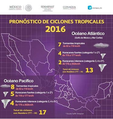Citó que el pronóstico de ciclones para el año 2016, es el siguiente: En el Pacífico, que inicia el próximo 15 de mayo, se pronostican 17 fenómenos; tres por arriba del promedio. Se esperan ocho tormentas tropicales, cinco huracanes fuertes categoría I y II, y cuatro huracanes intensos categorías III o mayor, para el Atlántico, que inicia el próximo primero de junio, se pronostica que se formen 13 ciclones; dos por arriba de lo normal. Serán siete tormentas tropicales, cuatro huracanes fuertes y dos huracanes intensos. Añadió que hacia el final de la temporada de lluvias, con el arribo del fenómeno de La Niña se espera que las lluvias se presenten por arriba de la media histórica en los meses de septiembre y octubre, existiendo la posibilidad de lluvias extraordinarias en el Sur-Sureste del territorio nacional. El discurso electorero de “Alito” Cuando le tocó el turno a “Alito”, se desbocó y atribuyó al actual ocupante de Los Pinos que hoy México esté “de pie y caminando hacia adelante; va con rumbo a convertirse en la décima economía del mundo”. “Estos son los logros de las reformas estructurales más importantes en los últimos 50 años. Son logros impulsados por un mexicano de excepción, un gobernante con visión de estadista, que guía al país con una conducción transformadora, clara y con rumbo”, expresó, pero se olvidó de mencionar la crisis en que se ha refundido a Campeche y Tabasco, con la fracasada Reforma Energética. Como si estuviera en época de elecciones, Moreno señaló: “Que se escuche bien y que se escuche fuerte: México no es propiedad de nadie. México, es patrimonio de todos los mexicanos. Por eso, quien promueva la desunión, quien prefiera la división antes que las soluciones, quien critique y no proponga, quien esté en contra de todo y a favor de nada, no quiere el desarrollo de nuestro pueblo. México es un pueblo con vocación de tranquilidad, de armonía y de paz social”. Y aprovechó para adular al priísta de moda, con rumbo a la candidatura presidencial: Quiero reconocer hoy a un servidor público que es baluarte de la tranquilidad y de la seguridad de México, un mexicano cuyo oficio y talento prestigian a la política, un mexicano que todos los días construye acuerdos y sustentos para la estabilidad política nacional. Me refiero a mi amigo, a mi hermano, el secretario de Gobernación, Miguel Ángel Osorio Chong. Hoy, los ciudadanos notan, anotan y votan. Y por eso, nada ni nadie los va a venir a engañar. Nuestro pueblo es un pueblo inteligente, y siempre lo ha demostrado.