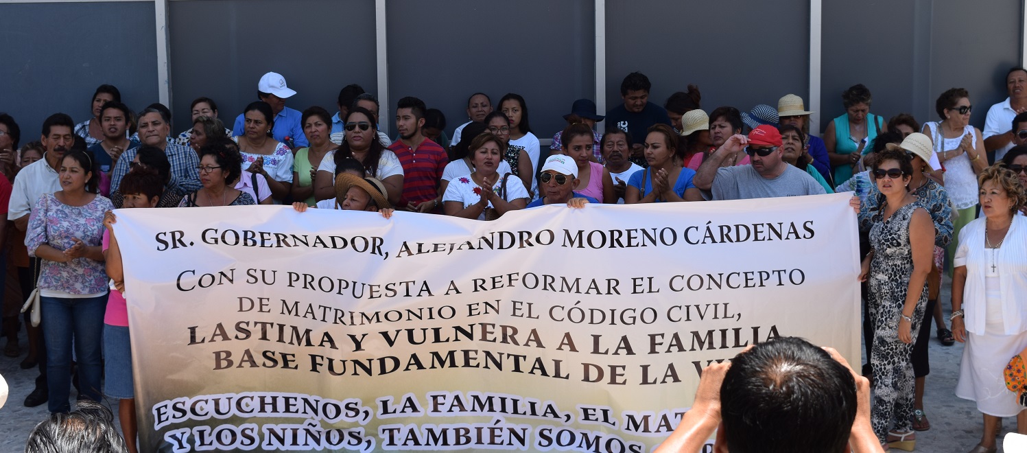 Sin embargo, los grupos católicos y cristianos radicales no estuvieron de acuerdo con esta modificación, al señalar que con ella se perdería la esencia de la familia y justamente esa era su consigna. Fueron poco más de 150 personas las que reclamaron su derecho a un plesbicito, pero como en Campeche no existe, de nada les sirvieron las más de cinco mil firmas que, según ellos, presentaron un día anterior al Congreso, con una “iniciativa ciudadana”. Los manifestante llegaron al recinto legislativo a las 11:30 horas y se plantaron a las afueras del mismo, sólo entró al salón de sesiones la comisión que interrumpiría la votación, la cual fue atendida posterior a la sesión en la sala “María Lavalle Urbina”, sin resultados. Los católicos, por su parte, esperaron a cada uno de los diputados para restregarles lo que llamaron “corrupción” en el caso del PRI y “traición” en el caso del PAN, pues el blanquiazul siempre se opuso a la iniciativa y ahora mostró sumisión ante “Alito”, o así lo dejaron ver los católicos enardecidos.