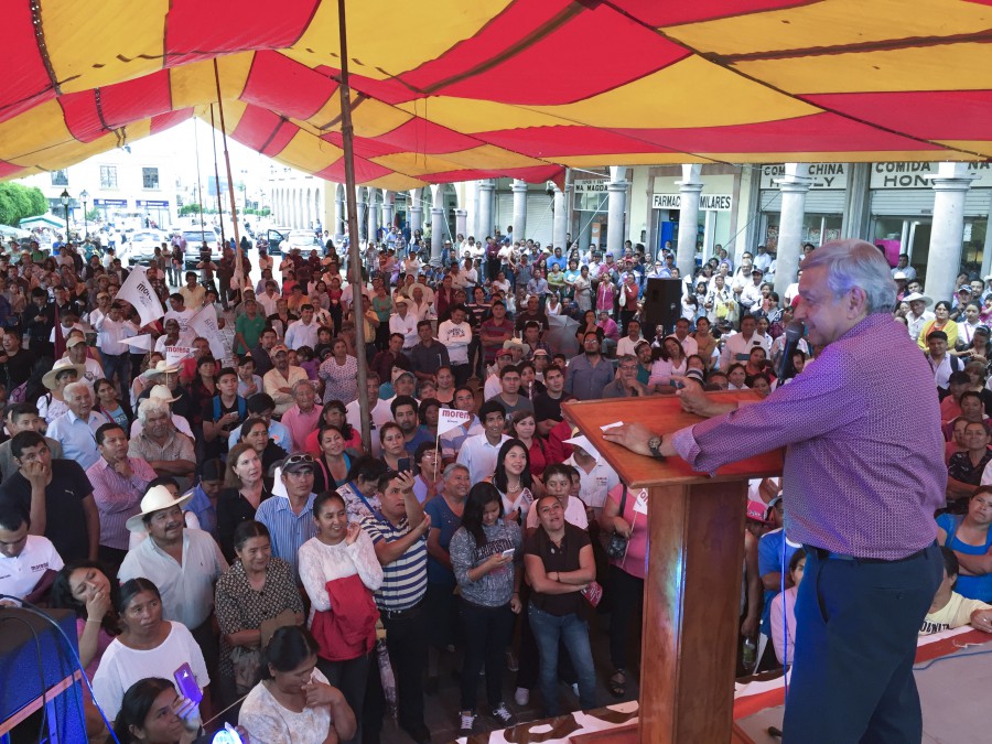 19amlo Los ciudadanos pueden leer la iniciativa de ley de Morena en la siguiente liga http://bit.ly/1TIiuxH. SANTIAGO DE ANAYA, Hgo. 18 de  mayo del 2016.- Andrés Manuel López Obrador informó que la bandera principal de Morena es terminar con la corrupción en México y por ello sus legisladores, Norma Rocío Nahle García y Virgilio Caballero Pedraza, presentaron una iniciativa de ley para juzgar por corrupción a presidentes de México, que hoy están impunes. El presidente del Comité Ejecutivo Nacional de Morena manifestó que ayer no fue aprobada la ley anticorrupción, porque no se pusieron de acuerdo PRI, PAN y PRD, ya que no les conviene, no les dieron instrucciones claras los jefes de la mafia del poder. Señaló que como los legisladores son achichincles de la mafia del poder, se pospone la aprobación de la ley para después de las elecciones del cinco de junio, porque no quieren que les afecten ninguna ley, aun cuando solo se trate de un ordenamiento, porque no es que ya con la ley va a terminar la corrupción. Indicó que el gobierno está al servicio de la mafia del poder y tiene el control en los medios de comunicación, así como de los partidos políticos: PRI, PAN, PRD, PT, Movimiento Ciudadano, Verde, llamados independientes, Nueva Tranza, son puros partidos paleros de la mafia del poder, pero solo Morena es el único partido independiente de la mafia del poder. Tanto en Santiago de Anaya, como en Francisco I. Madero, López Obrador señaló que a los de la mafia del poder no les interesa que en la agenda nacional esté como prioridad acabar con la corrupción, en la agenda de ellos tienen las llamadas reformas estructurales: laboral, educativa, fiscal y energética. Al conceder una entrevista en Madero, expresó que urge que llegue el 2018 para frenar, parar todas las privatizaciones y por mientras, en la Cámara de Diputados y en el Senado de la República, los legisladores de Morena denuncian las privatizaciones que lleven a cabo los gobiernos y no dejan de luchar. Al preguntar los reporteros su opinión sobre que el PAN y el PRD acaban de firmar un pacto para la gubernatura, respondió que los dos partidos son iguales de corruptos, seguramente ahora que se reunieron, se perdieron varias carteras. Aclaró que Morena no se reúne, ni hace acuerdos con la mafia del poder. Llama al pueblo de Oaxaca a votar por Morena En su cuenta de Facebook, Andrés Manuel hizo un llamado: “Al pueblo de Oaxaca, a los que están en el estado o trabajan y se buscan la vida en otras partes de la República o del extranjero, les pido con respeto que ayuden, por los medios posibles, a Salomón Jara Cruz, candidato de Morena a la gubernatura. La participación de todas y todos será sumamente importante en la lucha por la justicia y la auténtica democracia”. A través de un video, el político de izquierda opinó que el pueblo de Oaxaca es uno de los pueblos con más cultura en el mundo, porque han podido mantener sus costumbres, sus tradiciones, sus lenguas, su organización social. “Me ha tocado conocer todo Oaxaca, los 570 municipios de Oaxaca, le tengo un profundo amor al pueblo de Oaxaca, lo digo de manera sincera, y sé que por delante en Oaxaca va la cultura, no es como en otras partes, donde la cultura siempre va atrás, es un añadido, es un complemento, en Oaxaca todo es cultura, de eso depende la economía, lo social, lo político”, comentó. Hizo un llamado a todos los oaxaqueños, se han del partido que sea, porque no es un asunto partidista en exclusivo, es un asunto de todo un pueblo, repito, en MORENA están las puertas abiertas para los militantes del PRI, PAN, PRD, PT, de todos los partidos, porque no es abajo, en los pueblos, en las comunidades, donde está el problema, el problema está arriba, es una mafia que quiere dominar siempre. Señaló que Enrique Peña Nieto quiere imponer al hijo de José Murat como gobernador de Oaxaca, es una ofensa, no es posible que esto suceda, es un agravio para los oaxaqueños, los integrantes de Morena aspiran a vivir en una República, no en una monarquía. En la tierra de Benito Juárez no se pueden heredar los cargos, cómo es posible que el hijo de un ex gobernador como Murat ahora quiera ser gobernador y sobre todo lo quieren imponer, porque es amigo de Peña, no es así esto, hay que buscar la unidad de todo el pueblo para evitar una imposición, acabar con la corrupción y haya desarrollo y empleo en Oaxaca. Dijo que si se puede ganar en Oaxaca, porque hay una tendencia de que Morena gane la gubernatura, tiene encuestas e información al respecto, porque ya se quedaron rezagados el candidato del PAN-PRD, Antonio Estefan Garfias y del PT, Benjamín Robles Montoya, y hay posibilidad de ganar al PRI, no permitir la imposición de Murat. Convocó a promover entre los ciudadanos salgan a votar el próximo cinco de junio, votar a favor del candidato de Morena, Salomón Jara, y a defender el voto, porque son muy mañosos, José Murat es un mapache electoral, un delincuente electoral, si no se cuidan las casillas, van a rellenar las urnas, lo han hecho en otros tiempos. Morena, expresó, es la única esperanza del pueblo de Oaxaca y de México, en el 18 “vamos a triunfar en el país, pero necesitamos tener a un gobernador aliado en Oaxaca para llevar a cabo la transformación que necesita el estado, sacar de la pobreza a las personas”, porque tiene tres principios que lo rige: no mentir, no robar y no traicionar al pueblo de México. Anuncia firma de acuerdo con maestros en Hidalgo En la asamblea informativa en Santiago de Anaya, el ex candidato presidencial anunció que el próximo martes 24 de mayo, Morena firmará un acuerdo con los maestros de Hidalgo para hacer un frente ante la embestida de la mal llamada Reforma Educativa. En otro tema, comentó que se publicó una nota donde el gobierno de Estados Unidos ha suscrito un contrato para comprar un avión presidencial con las mismas características del que tiene Enri