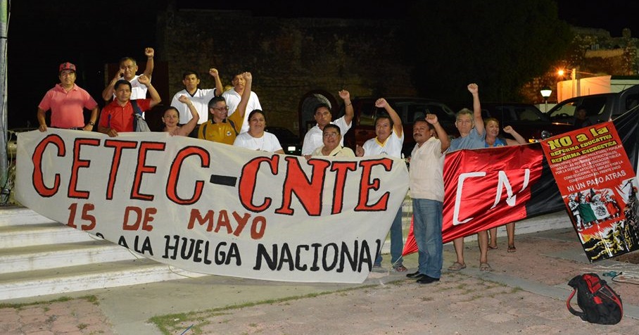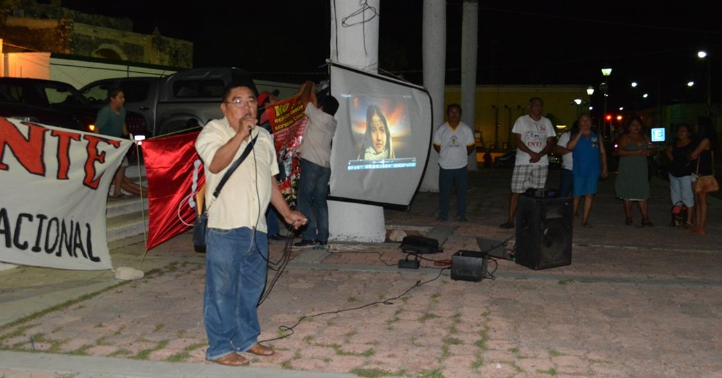 27mae Integrantes de la CETEC se manifiestan en los bajos del Palacio Municipal de Calkiní, también repudian represión contra profesores y demandan reinstalación de docentes en resistencia. 27mae2 CALKINI, Cam. 27 de mayo del 2016.- A 20 meses de la desaparición forzada de los estudiantes normalistas de Ayotzinapa, integrantes de la Coordinadora Nacional de los Trabajadores de la Educación (CNTE), a través de la Coordinadora Estatal de Trabajadores de la Educación de Campeche (CETEC) y de su vocero, Silverio Tuz Góngora, exigieron la presentación con vida y el castigo a los culpables de este acto cobarde. Los profesores también expresaron su total repudio a las acciones de represión que el gobierno federal, el gobierno de Miguel Angel Mancera, el gobierno del estado de Chiapas, a cargo de Manuel Velasco Coello, y el gobierno de Morelos, a cargo de Graco Ramírez Garrido, están realizando en contra de nuestros compañeros maestros que dignamente están en lucha por la abrogación de la mal llamada Reforma Educativa. En su manifestación, en los bajos del Palacio Municipal, los docentes demandaron la reinstalación inmediata de los compañeros maestros suspendidos por negarse a someterse a la farsa evaluación que a sangre y fuego los gobiernos de cada estado quieren imponer. Por otro lado, los manifestantes hicieron un llamado al magisterio campechano a unirse en esta lucha de resistencia contra la mal llamada Reforma Educativa, la cual aniquila los derechos de antigüedad y una pensión justa. Por último, convocaron a la sociedad en general a participar en la caravana motorizada, que será el sábado 28 de mayo, de Calkiní a Campeche, pasando por los municipios de Hecelchakán y Tenabo, dando información sobre la lucha. La caravana saldrá de Calkiní a las ocho de la mañana, sin hora fija de llegada a la ciudad de Campeche.