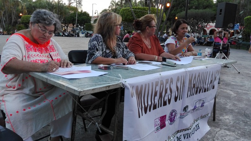 Mujeres sin Maquillaje dan a conocer el currículo de integrantes del Tribunal Superior de Justicia. Por Lorena Castellanos Rincón, corresponsal SemMéxico MERIDA, Yuc. 29 de mayo del 2016.- Siete de los 11 Magistrados del Tribunal Superior de Justicia del Estado no cuentan con la competencia curricular para desempeñar dichos cargos e impartir debidamente la justicia. Durante un ejercicio el colectivo, Mujeres Sin Maquillaje expuso la currícula de los Magistrados, evidenciando que la mayor parte de ellos no cuentan con una carrera propiamente judicial. Las integrantes de la asociación, en la explanada de la Plaza Grande de la capital yucateca, dieron a conocer que “la experiencia formativa que aporta el tener una carrera judicial no fue valorada en la postulación de varios Magistrados”. Durante la lectura de las hojas laborales, se reveló que algunos de ellos pasaron de puestos administrativos a los cargos que desempeñan al día de hoy, y que otros siendo Magistrados, incluso, tienen tiempo de impartir clases en las instituciones de educación superior. Por ejemplo, se informó que el Magistrado Presidente del TSJ, Marcos Celis Quintal, tampoco cumple con la competencia de una carrera judicial para desempeñar adecuadamente dicho cargo. La actividad se realizó en el marco del Día Naranja, acordado por la Organización de las Naciones Unidas (ONU), de realizar los días 25 de cada mes acciones proactivas que permitan prevenir y contrarrestar la violencia contra las mujeres, debido a la realidad que vive Yucatán respecto a la violencia institucional “que sufren día a día las mujeres que acuden a denunciar abusos”. De acuerdo al comunicado de prensa, Mujeres Sin Maquillaje explican que desde 2008 a la fecha en Yucatán se han cometido más de 80 feminicidios, muchos de los cuales “se podrían evitar si se hubieran dictado medida de protección para las mujeres que denunciaron violencia y no fueron escuchadas por las Instituciones que por Ley tienen asignada esta responsabilidad”.