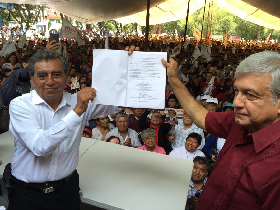 6.- Se ampliará y mejorará la infraestructura y las instalaciones educativas. 7. Ningún joven que quiera ingresar a la universidad pública será rechazado y se crearán nuevas universidades en municipios y regiones del estado. 9. Se impulsará y fortalecerá la educación bilingüe e intercultural. 10. Se apoyará el sistema de normales públicas. El gobierno democrático promoverá ante los tres Poderes de la Unión la cancelación de la mal llamada Reforma Educativa. Se compromete, además, a llevar a cabo acciones para que ningún profesor sufra hostigamiento ni represión por parte de las autoridades de la SEP. VI.- Los maestros que suscriban este convenio hacen el compromiso a título personal, como ciudadanos, de apoyar a Morena en los trabajos de promoción y defensa del voto para asegurar el triunfo en las próximas elecciones de gobernador. Da a conocer el “ABC del buen ciudadano” Desde Tlaxcala, estado con tanta historia y tanta cultura que dio lugar a la creación de México, de la patria, el político de izquierda dio a conocer “el ABC del buen ciudadano para estar informado y no dejarse manipular”. Puntualizó que primero se tiene que tener claro que México desgraciadamente es dominado por 100 grandes ladrones que integran una mafia del poder, eso se debe de tener muy claro para no dejarse engañar. “México está dominado por una mafia de políticos corruptos y traficantes de influencias, no hay en México democracia, el gobierno no representa al pueblo, el gobierno es un comité al servicio de esa minoría rapaz, eso debe de quedar muy claro, no existe en realidad un gobierno del pueblo y para el pueblo”. Aclaró que es puro cuento eso de que existe tres Poderes: el Ejecutivo, el Legislativo y el Judicial, en realidad el poder de los Poderes es esa mafia, eso se debe de tener muy claro. Segundo, prosiguió, esa mafia domina, porque también tiene el control casi absoluto de los medios de información, de los periódicos, de las estaciones de radio, de los canales de televisión, no se garantiza en el país la libertad de la información, el derecho a la información, los medios están controlados por la mafia del poder, sobre todo, los medios más influyentes y así administran perversamente la ignorancia en el país. “Han dominado durante siglos los conservadores corruptos, han oprimido al pueblo siempre manejando a los medios de información”, dijo al ejemplificar que cuando México perdió más de la mitad del territorio, se cometió un grave error, por la desinformación y los conservadores manejaban los periódicos se decidió ir de nuevo a Colombia a traer a Antonio López de Santa Anna. Santa Anna, recordó, y fue 11 veces presidente de México, quien vendió otra parte del territorio nacional, se descaró como gobernante autoritario, represor, lo fueron a buscar los conservadores y el pueblo por la desinformación le aplaudió en todo su regreso desde que llegó a pueblo de Veracruz hasta la Ciudad de México. Sostuvo que es importante informar, no andar con contemplaciones, Morena está enfrentando toda la distorsión que hacen los medios sobre lo que realmente sucede en México, los medios de información está al servicio de la mafia del poder. Lo tercero, expuso, que debe quedar claro: PRI, PAN, PRD, PT, Movimiento Ciudadano, los independientes, Encuentro Social, Verde, Nueva Tranza son puros partidos paleros al servicio de la mafia del poder, el único partido independiente de esa mafia, del pueblo y para el pueblo es Morena. “Por eso es muy importante que estemos aquí, estamos viviendo un momento estelar en la historia de México y con Morena vamos a lograr la transformación de nuestro país, vamos a sacar a México del atraso, y vamos a sacar a nuestro pueblo de la pobreza”. Llamó a participar en la elección del próximo domingo y a no dejarse apantallar por los corruptos que manejan los medios de información, hacen encuestas a modo, hay que tener confianza al pueblo de Tlaxcala. Pidió a los ciudadanos informar, orientar a la gente para que no vendan su voto y defender el voto por Morena, es decir, a dar el último jalón, hablar con las personas y decirles que la única opción para el pueblo es Morena. Explicó que no se dejen engañar, porque los partidos PRI, PAN, PRD, compran votos a 500 pesos o mil pesos, entregan despensas, frijol con gorgojo, y trafican con la pobreza de la gente. “Les vamos a dar su estate quieto el día domingo próximo, 5 de junio, va a ganar la dignidad del pueblo de Tlaxcala al dinero”.