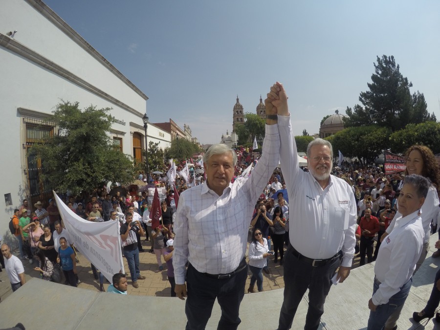 DURANGO, Dgo. 1 de junio del 2016.- Andrés Manuel López Obrador manifestó que el secretario de Gobernación, Miguel Ángel Osorio Chong y el subsecretario de Educación Pública, Otto Granados Roldán, deben de estar detrás del acto de provocación donde fueron vejados los trabajadores de la educación en Chiapas para culpar y seguir desprestigiando a los maestros, pero la verdad siempre se va a abrir paso. El dirigente nacional de Morena hizo un llamado a las autoridades correspondientes “para que se investiguen estos hechos, donde fueron vejados los trabajadores de la educación en Chiapas, porque es muy probable que se trate de agentes de Gobernación, provocadores de (Miguel Ángel Osorio) Chong y Otto Granados” Informó que Otto Granados fue jefe de prensa y de propaganda en el sexenio de Carlos Salinas de Gortari y actualmente es subsecretario de Educación con el titular de la Secretaría de Educación Pública, Aurelio Nuño, es una especie de Goebbels, quien era el titular de propaganda de Adolf Hitler. Expresó su satisfacción, porque hoy los dirigentes del Movimiento Magisterial Democrático del país, se deslindaron y reprobaron los hechos de Chiapas, en donde fueron vejados los trabajadores de la educación. “Qué bueno que hubo ese deslinde, porque están arreciendo los ataques al magisterio en periódicos, en estaciones de radio, en canales de televisión, qué bien que hubo ese deslinde”, expresó López Obrador reafirmó el compromiso de Morena con las maestras y los maestros de México, no son simples palabras, ha expresado siempre su solidaridad con las maestras, con los maestros, y aquí en Durango se firmó un acuerdo con los maestros, y aquí en Durango 14 de 15 candidatos a diputados locales son maestras y son maestros, Morena tiene una importante representación en profesores y profesoras. En su cuenta de Twitter, el presidente del Comité Ejecutivo Nacional de Morena celebró que “la CNTE se deslinde y repruebe actos de vejación a profesores. Los responsables pueden ser agentes de Otto o Chong. Perversos”. Morena no va a transar con la mafia del poder Durante el cierre de campaña del candidato de Morena al gobierno de Durango, Guillermo Fabela Quiñones, Andrés Manuel aseguró que Morena no va a transar con la mafia del poder, que no son iguales, que no se confunda, porque aliarse al PRI o al PAN sería un acto de traición al pueblo de México. Dijo que Morena no se alía a ladrones, a rateros como los candidatos del PAN, José Rosas Aispuro y del PRI, Esteban Villegas, Esteban es ratero y Aispuro es ladrón, son iguales, si acaso hay un matiz, es de que Esteban como priista corrupto es cínico, pero Aispuro es corrupto e hipócrita. Los del PRI de arriba corruptos cínicos, los del PAN de arriba corruptos e hipócritas, señaló al denunciar que en Durango, los del PRI y del PAN intentaron comprar a los dirigentes de Morena, intentaron hasta engañar a otros y también cooptar a los candidatos. Puso de ejemplo que el candidato del PAN, José Rosas Aispuro, intentó llevarse a candidatos y dirigentes de Morena, nada más quedó con las ganas, hizo lo que el viento a Juárez. “Aquí muchos no aguantaron la tentación, no resistieron, porque no tienen convicciones, no tienen principios, no tienen dignidad, nada más que se les olvida que el pueblo no se vende, pueden comprar a gente sin escrúpulos, pero no van a poder comprar a todo un pueblo que tiene necesidad de un cambio verdadero y que tiene hambre y sed de justicia”, manifestó. Dio a conocer que sacaron una edición especial de un periódico en contra de Morena, repartieron miles en Durango los que supuestamente estaban en Morena, pero eran infiltrados, ayudando al corrupto de Aispuro, porque ya no están, que sigan, era guerra sucia. Hizo un gran reconocimiento, un homenaje a Guillermo Fabela, por su rectitud, por su honestidad, porque querían que Guillermo declinara y que leyera, hoy, un documento en contra de Morena, ya habían montado toda una estrategia perversa y por eso es muy importante que haya mujeres y hombres con dignidad, mucha dignidad. Preguntó a los ciudadanos si votarían por gente corrupta como Esteban o por el perverso de Aispuro, las personas decidieron no votar por los candidatos del PRI y del PAN, y afirmó que la mayoría del pueblo de Durango se va a seguir dando cuenta que la opción, la alternativa es Morena. Explicó que hoy se concluyen las campañas en el país y pidió hacer labor de convencimiento hasta las 12 de la noche, el domingo cinco de junio, todos agarrados salgan a votar para que triunfe Morena, porque el domingo será la introducción de lo que vendrá el 2018, la transformación de México. Dijo que los corruptos, los sinvergüenzas abusan de la nobleza del pueblo, trafican con la pobreza de la gente, lo que hacen es comprar los votos, ahora está en su apogeo que los partidos de la mafia del poder entregan de despensas, frijol duro con gorgojo y del extranjero, láminas de zinc, de cartón, tinacos y van a manipular como siempre con el agua, entregan muchas migajas. El día de la elección, prosiguió, los mañosos entregan dinero, son perversos, antirreligiosos, anticristianos, “yo no sé cómo se atreven ir a los templos, ir a la iglesia si violan los mandamientos, si se valen de la pobreza del pueblo”. Mafia del poder controla mayoría de medios de comunicación y partidos El político de izquierda indicó que en México el poder de los poderes es la mafia del poder, tiene el control de la mayoría de los medios de comunicación y de todos los partidos políticos, menos de Morena, es decir, hay sólo dos partidos: Morena y todos los demás. Morena, dijo, significa la honestidad y todos los demás que representan al régimen de corrupción, de injusticias y de privilegios, PRI, PAN, PRD, PT, Encuentro Social, los llamados independientes, el Verde, Nueva Transa son puros partidos paleros, alcahuetes de la mafia del poder. Al pregunta