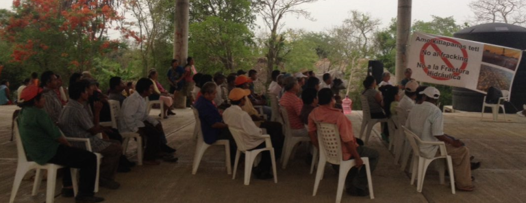 El Cabildo aprueba por unanimidad acta en rechazo al “fracking”, al Monterrey VI y otros proyectos extractivos/Se suma al municipio de Xilitla: primer municipio de la huasteca potosina en declararse libre de “fracking”. SANTA ELENA, TANLAJAS, S.L.P. 5 de junio del 2016.- El Cabildo del municipio aprobó por unanimidad un acta donde se declara a Tanlajás como municipio libre de “fracking”. Las y los integrantes del Cabildo deliberaron el pasado 26 de mayo sobre el contenido de una propuesta de acta donde se rechaza, para todo el territorio que comprende este municipio, la realización de proyectos de extracción de hidrocarburos no convencionales, así como todo proyecto de infraestructura que auxilie a estas actividades. Asimismo, rechazaron los megaproyectos de extracción de aguas, haciendo mención explícita del proyecto de acueducto denominado “Monterrey VI”, que pretende trasladar aguas de la cuenca del Pánuco a la Zona Metropolitana de Monterrey. En voz de Juventina Molina, asesora general del Ayuntamiento que preside Domingo Rodríguez Martell, las autoridades de Tanlajás hicieron público el contenido del acta a más de 90 ejidatarios téenek del ejido de Santa Elena, reunidos en un Foro por la Defensa del Territorio, organizado por las autoridades del núcleo agrario, así como integrantes de la Coordinadora de Organizaciones Campesinas e Indígenas de la Huasteca Potosina (COCIHP) y la Alianza Mexicana contra el Fracking (AMCF). El Ayuntamiento se comprometió a destinar recursos para la defensa jurídica de las comunidades rurales comprendidas en esta demarcación política. Asimismo, invitaron a todos las asambleas ejidales del municipio a declararse como territorios libres de “fracking”. Rosa Esther Peña Soto, integrante de la COCIHP y la AMCF, señaló que la declaratoria del Cabildo es producto de más de un año y medio de trabajo intenso de difusión de información sobre amenazas al territorio y mecanismos de defensa a partir de foros realizados en 13 municipios y más de 150 comunidades de la Huasteca. Por su parte, Rogel del Rosal, también integrante de la COCIHP, declaró que a raíz de la Reforma Energética y las rondas de licitaciones de contratos para la explotación de hidrocarburos anunciadas por la Secretaría de Energía, el territorio de 18 municipios de la Huasteca Potosina se encuentran en riesgo de ser afectados por pozos convencionales y no convencionales (que incluyen el uso de “fracking”), y afirmó que las afectaciones de este tipo de pozos son profundas e irreversibles.