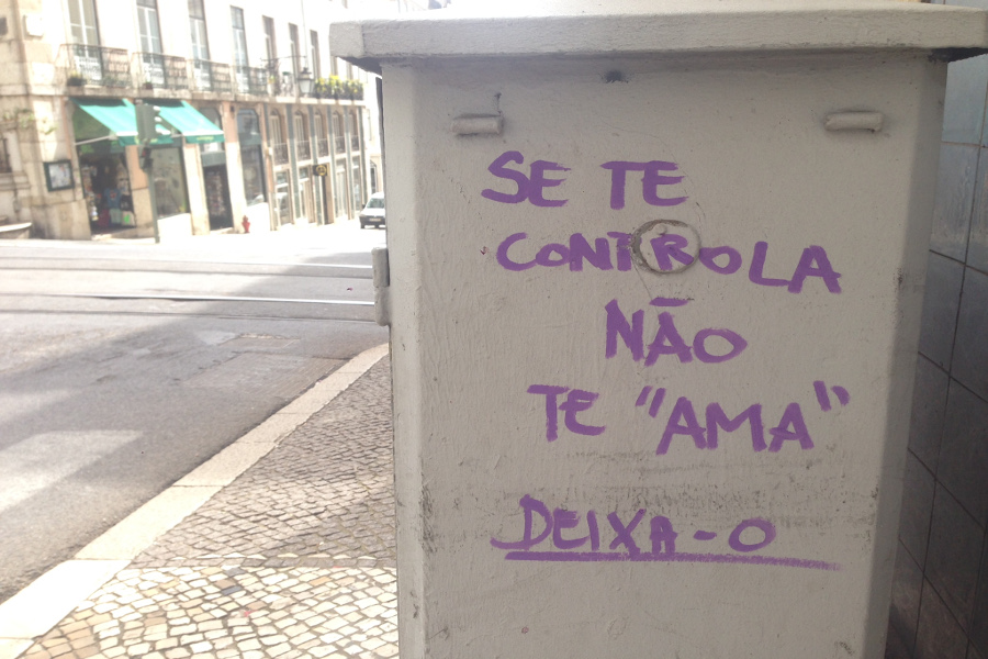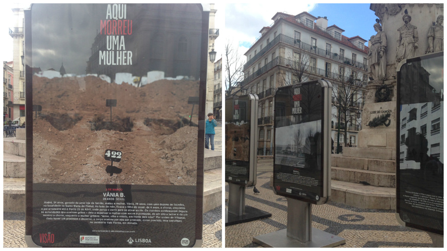 “Aquí murió una mujer”. Una instalación escalofriante en las calles que mantiene viva la memoria del feminicidio en Lisboa, Portugal. También en Lisboa, “Si te controla, no te ‘ama’. Déjalo”.