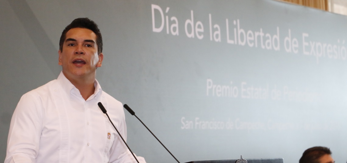En el desayuno por el Día de la Libertad de Expresión, el ilegítimo y espurio Alejandro Moreno entrega premios y regalos a los “comprometidos” trabajadores de los medios de comunicación, y les pide “hablar bien del estado”.