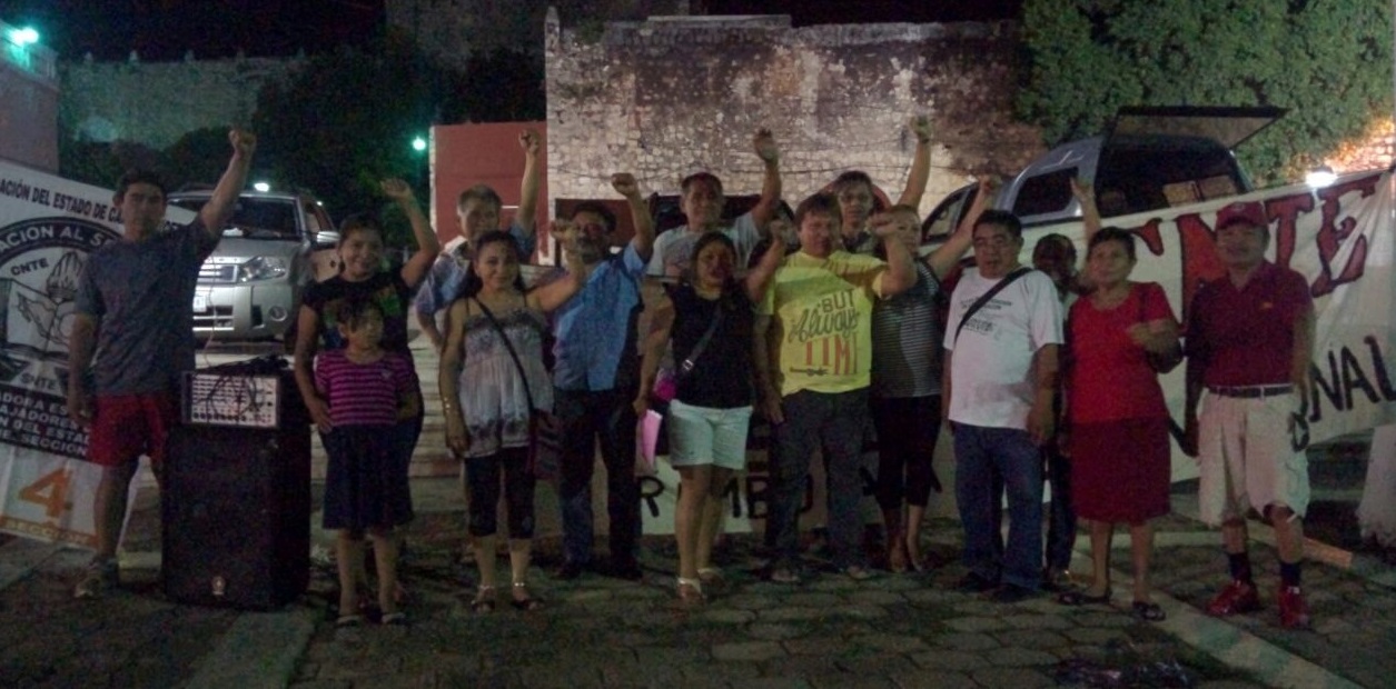 Por Ronny Aguilar CALKINI, Cam. 9 de junio del 2016.- Integrantes de la Coordinadora Estatal de los Trabajadores de la Educación de Campeche (CETEC) continuaron con los brigadeos programados, para hacer un llamado al magisterio campechano, a los estudiantes y a la sociedad en general, a que abran los ojos ante los graves retrocesos del gobierno peñista, que pretende imponer su falsa Reforma Educativa, a base de represiones, macanazos y gases lacrimógenos en contra de los maestros y la sociedad que repudia la violencia generada por el propio Estado. Durante el brigadeo, el representante de la Coordinadora Nacional de Trabajadores de la Educación (CNTE) en Campeche, Silverio Tuz Góngora, señaló que esta falsa reforma nos está orillando al despido masivo de docentes y a la privatización de la educación. “La violación a nuestras garantías individuales plasmadas en la Constitución, han sido el pan de cada día desde que iniciamos nuestras protestas en el 2013, pero esas acciones del gobierno no nos intimidan, al contrario, fortalecen nuestra lucha, porque ante la cerrazón al diálogo, sólo demuestra su ineptitud y que su falsa reforma se basa en el engaño a la sociedad y a los maestros”, expresó. “Vemos con claridad que la meta del gobierno es acabar con las plazas bases del magisterio para encaminar a los nuevos docentes a los subcontratos”, advirtió. Manifestó que el día de hoy se ha intensificado la lucha magisterial en el corazón de nuestro país, arribando desde temprana hora diferentes contingentes de varios estados para exigir la apertura a la mesa de diálogo. Finalmente, invitó a la marcha de la dignidad del magisterio campechano para el día domingo, a las 10 de la mañana, punto de salida en el parque de San Martín.