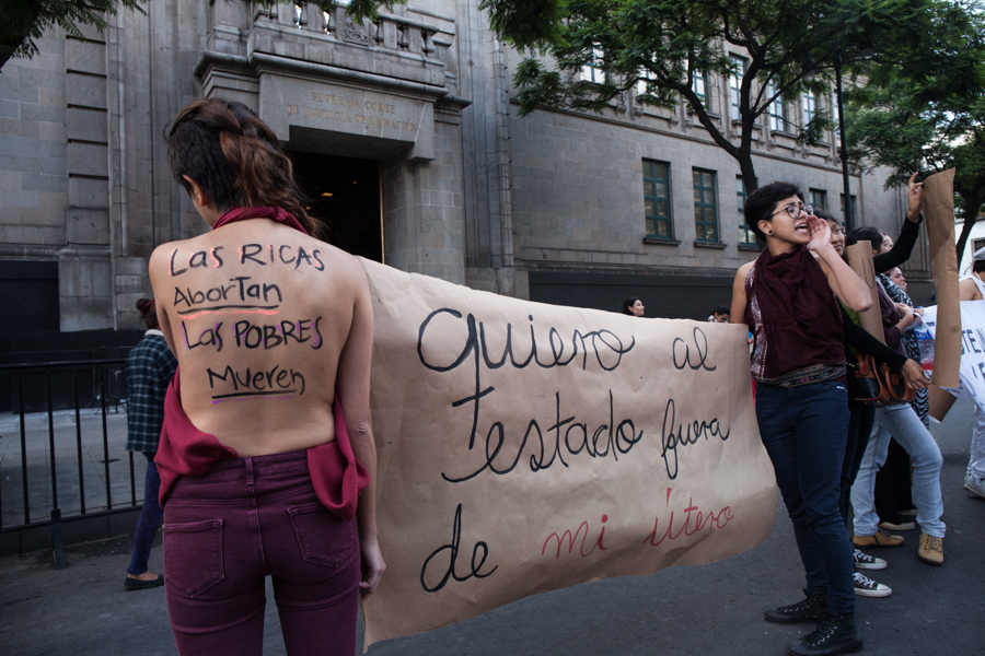 https://youtu.be/yqBGcDXmVII Mientras Corte debatía, afuera se defendía el derecho a decidir/CIMACFoto: César Martínez López Por Cristina Acuña Roeder Cimacnoticias CIUDAD DE MEXICO, D.F. 29 de junio del 2016.- Desde temprana hora, grupos feministas lanzaron porras en favor del derecho a decidir frente de la Suprema Corte de Justicia de la Nación (SCJN), en esta capital, donde este mediodía la Primera Sala discutió un proyecto para garantizar el aborto legal cuando esté en riesgo la salud de la mujer. “Existe un falso debate entre quién está a favor de la vida y quiénes contra ella. Todas estamos a favor de la vida, pero de la vida con dignidad, con libertad”, se leía en una manta que llevaban las mujeres. El proyecto presentado por el ministro Arturo Zaldívar Lelo de Larrea era para analizar el amparo promovido por Margarita P., mujer a la que se le negó el derecho al aborto legal por poner en riesgo su salud, en una clínica del Instituto de Seguridad y Servicios Sociales de los Trabajadores del Estado (ISSSTE) en 2013. Desde las nueve de la mañana, agrupaciones como Las Constituyentes CDMX, #24A y otras feministas procedencias diversas, se colocaron en la banqueta frente a la Corte, y con porras y carteles se confrontaron verbalmente con integrantes de la organización antiabortista Provida, que a su vez gritaban “asesinas”. “Los asesinos son ustedes, en abortos clandestinos las que mueren son mujeres”, reviraron las feministas. “Las ricas abortan y las pobres mueren”, era otra de las consignas. Graciela Cervantes, adulta mayor que acudió desde temprano a la SCJN para apoyar el derecho a decidir, expresó que está cansada de que el Estado la trate como únicamente una “proveedora de vida” y no como un ser humano. “Nosotras somos las que parimos y somos las que sabemos el por qué y el cómo tomamos una decisión que no es fácil, que se toma cuando algunas situaciones nos orillan a hacerlo. Y yo estoy a favor de que el Estado nos proteja como entes vivientes. No sólo como proveedoras de vida”, abundó Cervantes. En tanto, cuatro activistas jóvenes de Las Constituyentes CDMX se manifestaron con mensajes escritos en sus espaldas para defender el derecho al aborto, y subrayaron que no es un crimen. Una de ellas dijo que protestaba hoy para que las mujeres de bajos recursos puedan acceder a opciones de aborto legal gratuito, y no tener que pagar por ellas. “Primero fui a instituciones gubernamentales donde no recibí apoyo”, contó la joven de 22 años de edad, quien prefirió omitir su nombre. “Tuve que hacerlo por mi propia mano con misoprostol. Soy consciente de que yo lo pude hacer porque yo tengo el dinero para hacerlo de una manera segura. Pero hay mujeres que no”, apuntó. En un momento, después del mediodía, una activista corrió la versión de que el proyecto del ministro Zaldívar Lelo de Larrea había sido aprobado en votación de la Primera Sala, lo que desató la algarabía de las feministas que empezaron a gritar “¡Sí se pudo!”. En contraste, los militantes Provida lanzaron consignas contra el ministro. Una hora después, mientras la sesión de la Primera Sala continuaba, las activistas y los integrantes de la ultraderecha comenzaron a retirarse. Sin embargo, todo se trató de una confusión, pues la resolución final de las y los ministros fue rechazar el proyecto de Arturo Zaldívar.