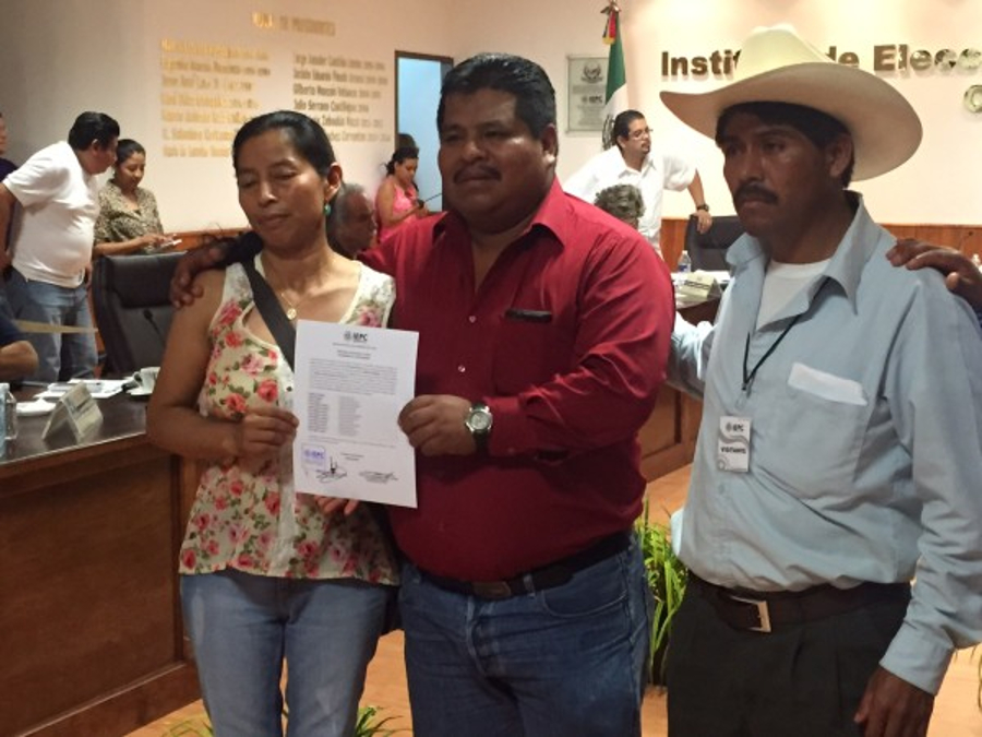 Las alcaldesas de papel/La presidenta municipal electa de Chanal, al recibir su constancia de mayoría. Es su esposo quien está a su lado y ahora presidente municipal | Foto: Ángeles Mariscal Por Sandra de los Santos Cimacnoticias/ChiapasParalelo TUXTLA GUTIERREZ, Chis. 31 de julio del 2016.- En las elecciones del 2015, en Chiapas, la paridad electoral obligó a todos los partidos políticos a integrar a mujeres en las planillas de candidaturas a los ayuntamientos; todos lo hicieron y algunas ganaron, pero en la práctica ellas no cobran sueldo ni ejercen el puesto. Según cifras de la Red por la Paridad Efectiva (Repare) en las pasadas elecciones fueron electas 797 regidoras y 562 regidores en los 122 municipios de Chiapas. Sin embargo este número se ha invertido, ahora son más varones que mujeres debido a que muchas de ellas renunciaron a su cargo en el primer año de gestión y fueron suplidas por hombres. En Oxchuc, Chanal, Chenalhó y Tila las alcaldesas renunciaron o fueron obligadas a renunciar. En Chamula, Malpaso, Reforma, Tecpatán, Amatenango del Valle, Oxchuc, San Cristóbal de las Casas y Las Rosas, por citar algunos casos documentados, las presidentas municipales o mujeres integrantes de los ayuntamientos no están ejerciendo el cargo, sus puestos sólo están en el papel. El caso Chamula El pasado fin de semana, en plena plaza de Chamula, Narciso Lunes Hernández fue asesinado junto al presidente municipal, Domingo López Hernández. Todos los medios de comunicación dieron por hecho que Narciso Lunes Hernández era el síndico municipal porque en la práctica así era, aunque su hija, Cristina Lunes Shilon fue quien resultó electa. Por usos y costumbres, las mujeres en Chamula, como otros municipios indígenas, no pueden ejercer cargos en el gobierno. Las regidoras que integran el ayuntamiento tampoco están en funciones. Ninguna de ellas lo ha denunciado. De acuerdo al portal de transparencia del ayuntamiento de Chamula la síndica municipal gana 45 mil 540 pesos mensuales, un sueldo –que en teoría– es más alto que el del propio alcalde. De ese recurso Cristina no ha cobrado un peso. Narciso Lunes Hernández, su padre, es quien ejercía el puesto y cobraba el salario. Tras el asesinato la noche de este miércoles 27 de julio fue nombrado el presidente municipal de Chamula así como dos regidores. No hubo necesidad de cambiar al síndico porque se supone que Cristina Lunes Shilon tiene ese cargo y ella sigue en el puesto, aunque sólo sea en el papel. Obligadas a renunciar En Chanal y Tila, las presidentas municipales nunca pudieron despachar en su oficina. A seis meses de haber tomado posesión, ambas renunciaron a su cargo y en su puesto quedaron los síndicos municipales. En los dos municipios los hombres fueron los candidatos hasta que los partidos fueron obligados a postular mujeres para cumplir con la paridad en candidaturas. En el caso del municipio de Chanal, la presidenta municipal, Olga Gómez López, presentó ante el Congreso local una petición para separarse del cargo, misma que fue aceptada y los diputados nombraron como nuevo alcalde a Javier Velasco Bautista, esposo de la presidenta municipal, quien se desempeñaba como síndico. En Tila sucedió algo similar, la alcaldesa Fabiola Vázquez Ortiz dejó el cargo y el Congreso local nombró como nuevo presidente municipal a Edgar Leopoldo Gómez Gutiérrez, quien se desempeñaba como síndico. La Ley Orgánica de los Municipios del Estado de Chiapas señala que no puede haber parientes hasta en tercer grado como integrantes de la misma planilla en una candidatura para los ayuntamientos pero en estos casos nadie impugnó así que las y los familiares se postularon y ganaron sin problemas. “Tila y Chanal son un ejemplo claro de las artimañas que usaron los partidos políticos para simular el cumplimiento del mandato constitucional de paridad de género. Las esposas de quienes fueron los candidatos les sustituyeron en las planillas electorales y después de haber ganado las elecciones, pidieron licencia indefinida”, declaró Elva Narcia, integrante de la Repare. “Lo que está por investigarse también es por qué se permitió que los esposos de las candidatas ocuparan un puesto prominente en el Cabildo y por qué si la Constitución local prohíbe el traspaso de poder entre cónyuges, parejas de facto y familiares hasta en tercer grado, se les permitió ascender tras las licencia de las alcaldesas”, dijo. En Oxchuc y Chenalho no dejaron gobernar a las presidentas municipales. En ambos municipios mujeres indígenas ganaron las elecciones pero ninguna pudo ejercer sus funciones ante las constantes manifestaciones de la población y aunque ellas no querían renunciar, fueron obligadas a hacerlo. María Gloria Sánchez, ex alcaldesa de Oxchuc nunca pudo tomar posesión del cargo debido al conflicto que se desató en ese municipio por los resultados de las elecciones en donde resultó electa toda vez que diferentes grupos señalaron irregularidades en el proceso de elección. Esta sería la segunda vez que María Gloria asumiría la presidencia municipal. Su esposo, Norberto Sántiz López gobernó dos veces el municipio y juntos llevaban casi 15 años de cacicazgo en el lugar. En Chenalhó no todo está dicho. En mayo pasado Rosa Pérez Pérez dejó su cargo como alcaldesa porque el presidente de la mesa directiva del Congreso local, Eduardo Ramírez y el coordinador de la bancada del PVEM, Carlos Penagos, fueron secuestrados por habitantes que pedían la renuncia de la presidenta municipal. Una vez que ella renunció los legisladores nombraron como nuevo alcalde a Miguel Sántiz Álvarez. De acuerdo con la ex presidenta municipal el nuevo funcionario le pidió dinero y contratos de obras pero cuando ella se negó él decidió encabezar las protestas en su contra hasta destituirla. Ahora el caso está en la Sala Superior del Tribunal Electoral del Poder Judicial de la Federación (TEPJF) debido 