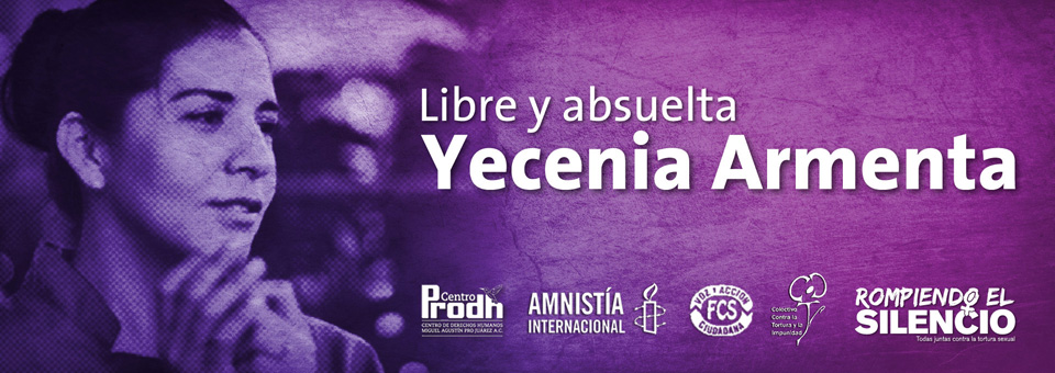Información adicional: Yecenia forma parte de la campaña nacional “Rompiendo el Silencio. Todas Juntas contra la Tortura Sexual”, desde noviembre de 2014 y su rostro ha sido el de la tortura en México en el marco de la campaña internacional “Stop Tortura” de Amnistía Internacional.