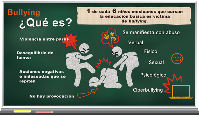 Un 60% de los suicidios de niñas y niños tienen relación con esa práctica aberrante SemMéxico CIUDAD DE MEXICO, D.F. 25 de agosto del 2016.- México es el país con más casos de bullying, dijo la diputada federal Erika Rodríguez Hernández, quien alertó que esta ”práctica aberrante” provoca el 60 por ciento de los suicidios de niñas y niños en el país. La diputada por el Estado de Hidalgo, señaló en un comunicado, que de acuerdo con una encuesta realizada por Naciones Unidas, por el problema del bullying México ocupa el primer lugar en el mundo. Rodríguez Hernández invitó a madres y padres de familia, así como a las autoridades escolares a promover acciones para evitar y erradicar estas práctica y explicó a padres y madres de familia reunidos con motivo del inicio del ciclo escolar, que el bullying puede darse de forma de maltrato psicológico, verbal, físico, tanto en el recinto escolar, como fuera de él, así como a través de las redes sociales. Señaló que la encuesta de la ONU señala que seis de cada 10 niños en Hidalgo, han sufrido algún tipo de violencia por sus compañeros y compañeras de clases, y dio a conocer las altas cifras de suicidio infnatil relacionadas con esta práctica. Por ello, recomendó a padres y madres de familia estar atentos a cualquier signo que presenten sus hijas o hijos como puede ser golpes en su cuerpo, cambios de ánimo repentino, bajas notas, surgimiento de complejos que antes no tenía, ganas de no ir o llegar tarde a la escuela con el fin de atender esta problemática que afecta a la niñez mexicana. Asimismo, adelantó que la Ruta por la Igualdad seguirá siendo preponderante como parte de sus actividades dentro del estado, sensibilizando mediante la participación ciudadana, las instituciones públicas gubernamentales y la sociedad civil organizada para entrelazar una respuesta firme a todos los niveles en el problema de la violencia y desigualdad.