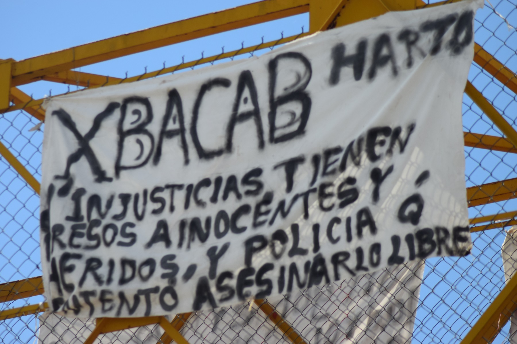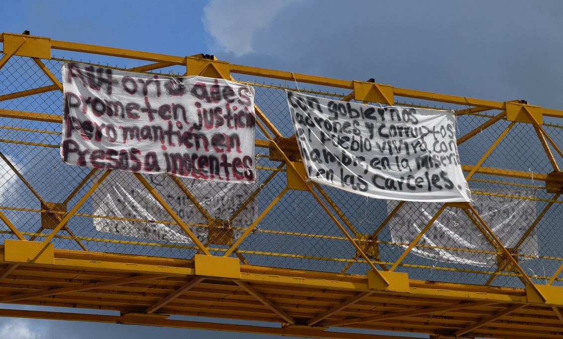 El ilegítimo Alejandro Moreno manda a personeros a pedir al comisario municipal que retire las mantas en los puentes peatonales, que reclaman la libertad de los 3 detenidos en el operativo y la represión del 6 de agosto.