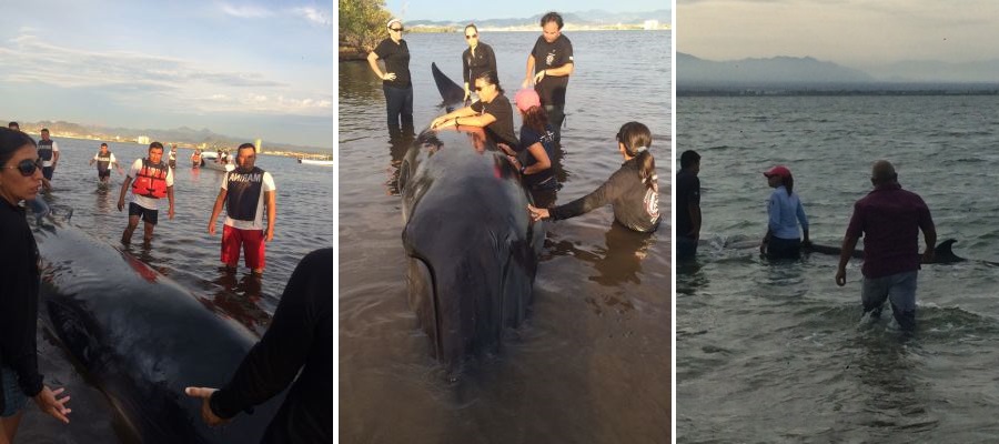 El ejemplar del mamífero marino se varó tres veces en playas de Baja California Sur. LA PAZ, B.C.S. 26 de septiembre del 2016.- Una ballena de Bryde fue auxiliada por las autoridades ambientales en playas de La Paz, Baja California Sur, a través de la Red de Atención para Varamientos de Mamíferos Marinos. Se logró evitar el deceso del ejemplar, sacándola de la zona intermareal en tres ocasiones y llevándola a aguas profundas. La Procuraduría Federal de Protección al Ambiente (Profepa) informó que atendió en tres ocasiones el varamiento de una ballena de Bryde (Balaenoptera edeni) en la Bahía de La Paz, mediante la activación de la Red de Atención para Varamientos de Mamíferos Marinos para las Costas de Baja California Sur. “El primer evento se presentó el jueves 22 de septiembre, a las 8:35 horas, en la playa conocida como El Comitán, de la Bahía de La Paz, donde la ballena se encontraba en aguas muy someras, con dificultades para nadar, por lo que inspectores de Profepa, con el apoyo de personal del Centro de Investigaciones Biológicas del Noroeste (CIBNOR) y de medios locales de comunicación, lograron sacarla del sitio, empujándola hacia el canal de navegación”, expresó. “En esta ocasión, la ballena no se encontraba totalmente varada, lo que facilitó su rescate, enfilándola con una embarcación hacia aguas profundas” precisó. Manifestó que el segundo evento se presentó el mismo día, a las 16:00 horas, reportándose el ejemplar totalmente varado en una zona fangosa de Mangle en los bajos de la punta de la península de El Mogote, Bahía de La Paz, donde la Red de Atención para Varamientos de Mamíferos Marinos para las Costas de B.C.S., con el apoyo de 19 elementos de la Secretaría de Marina (SEMAR) y prestadores de Servicios Turísticos de La Paz, coordinados por la Profepa, la liberaron, llevándola hacia aguas profundas y monitoreándola por una hora hasta que se perdió de vista aguas adentro ya entrada la noche. “Al día siguiente, 23 de septiembre, a las 8:30 horas, nuevamente se reportó nadando a la ballena en aguas someras de la zona de Costa Baja, por lo que de manera inmediata la Profepa activó la Red de Atención para Varamientos de Mamíferos Marinos para las Costas de B.C.S., evitando un nuevo varamiento del cetáceo, realizando las maniobras necesarias con el uso de una embarcación para guiarla nuevamente a aguas profundas”, apuntó. Dijo que no se ha tenido un nuevo reporte de varamiento del ejemplar, por lo que los esfuerzos realizados permitieron salvarlo.