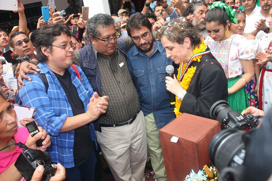 Periodista recibe galardón en Guerrero/Foto: Guadalupe Cabañas Por Guadalupe Cabañas, corresponsal Cimacnoticias CHILPANCINGO, Gro. 26 de septiembre del 2016.- La periodista mexicana, Carmen Aristegui Flores, recibió en la capital guerrerense la presea popular “Sentimientos del pueblo”, reconocimiento otorgado también a las familias de los 43 normalistas desaparecidos de la Normal Rural Isidro Burgos de Ayotzinapa, a Gilda Cruz Revueltas, nieta del escritor José Revueltas, y a la Coordinadora Nacional de Trabajadores de la Educación (CNTE). Esta presea es otorgada a la par de la que entrega el congreso del estado el día 13 de septiembre de cada año. La condecoración popular se realiza desde el año de 2007 después de que la escritora Elena Poniatowska declinara la invitación hecha por el congreso del estado y pidiera que en su lugar se le otorgara dicho reconocimiento a la trayectoria del doctor y luchador social Pablo Sandoval Cruz, por lo que la convocatoria se declaró desierta ese año. Así fue como nació la entrega de la presea popular, “Sentimientos del pueblo”, que desde entonces se ha entregado a la periodista Elena Poniatowska Amor; al escritor Paco Ignacio Taibo II; a la hija del activista Rosendo Radilla Pacheco desaparecido por el Ejército en 1974, Tita Radilla Martínez. La activista y ex senadora, Rosario Ibarra de Piedra, el Obispo Samuel Vera López, el activista Javier Sicilia Zardain, esposas y familiares de los guerrilleros Génaro Vázquez Rojas y Lucio Cabañas, son otras personas que han recibido el reconocimiento. En esta ocasión fue para la periodista Carmen Aristegui Flores, para las familias de los 43 normalistas de Ayotzinapa desaparecidos, a Gilda Revueltas y a la Coordinadora Nacional de Trabajadores de la Educación (CNTE.
