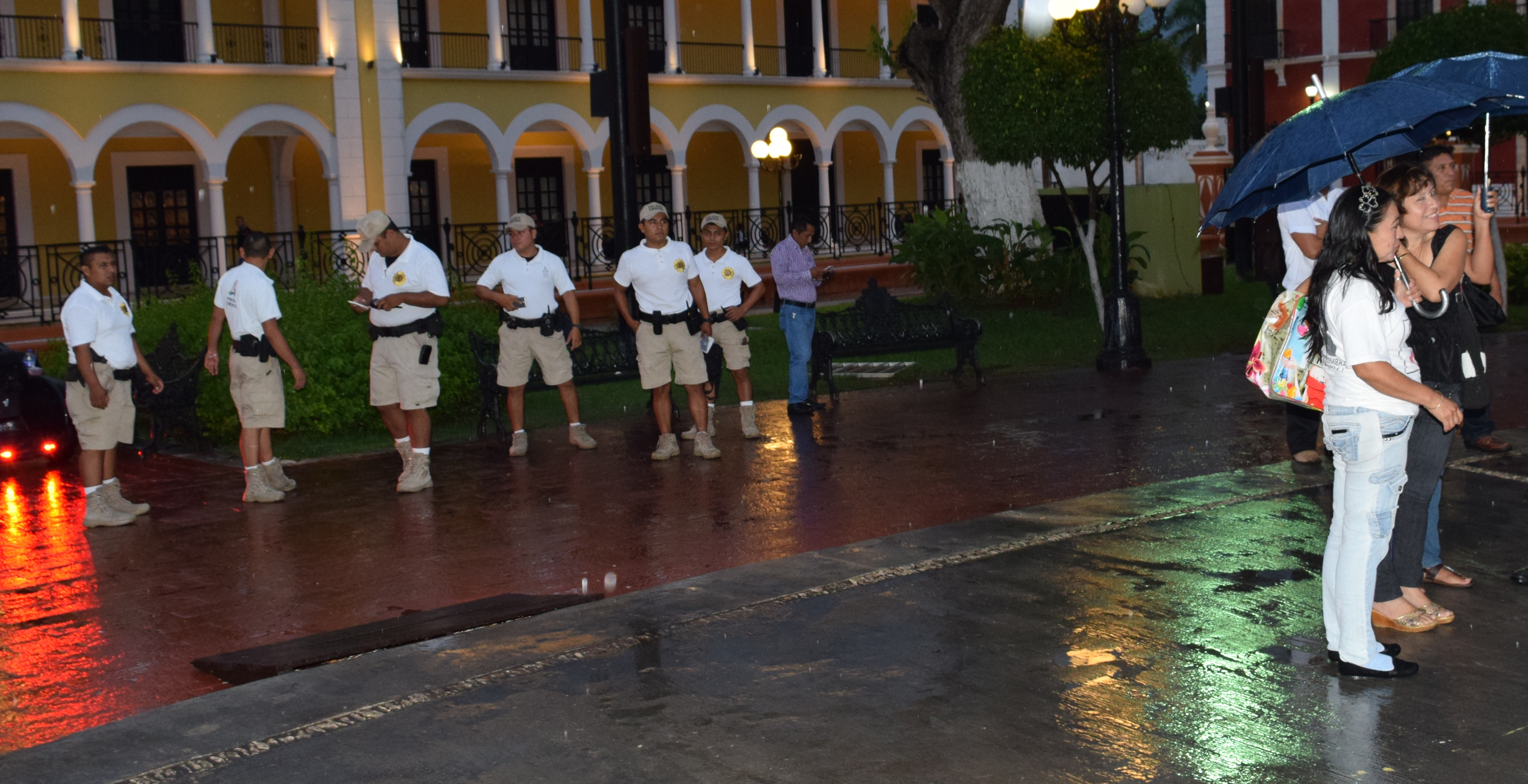 El representante de la Coordinadora Nacional de Trabajadores de la Educación (CNTE), Silverio Tuz Góngora, invitó a los maestros que no han presentado examen, a que no lo hagan, ya que ahora es voluntario, los instó a la resistencia y no dejarse arrastrar por el gobierno neoliberal, que pretende despojarlos de sus derechos laborales y sindicales obtenidos durante años de lucha. Los manifestantes entonaron también canciones de protesta y latinoamericanas, se gritaron diversas consignas, como “Vivos se los llevaron, vivos los queremos”, “No somos todos, nos faltan 43”, “Ni la lluvia, ni el viento, detendrán el movimiento”, “Fuera Peña”. Antes de terminar la acción global, se realizó el pase de lista con el nombre de los 43 estudiantes desaparecidos, al terminar se gritó con enjundia “Justicia”, se colocaron lonas e hicieron pancartas con diferentes consignas. Finalizó la manifestación con la mano izquierda en alto, entonando el himno Venceremos. Hay que hacer mención que desde que el mitin dio inicio, un grupo de seis policías “turísticos” se acercó a tomar fotografías y preguntar nombres, argumentando que es su “trabajo”, y aunque el hostigamiento policiaco vulnera la libertad de manifestación, un par de policías se quedó a las puertas del parque, grabando audio, tomando fotos y sacando videos.