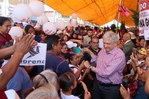 Previamente, López Obrador aseveró que el priista Enrique Peña Nieto está aferrado y no quiere que el pueblo del Estado de México elija libremente a sus autoridades, en este caso que elija libremente a la próxima gobernadora del Estado de México, la maestra Delfina Gómez Álvarez.